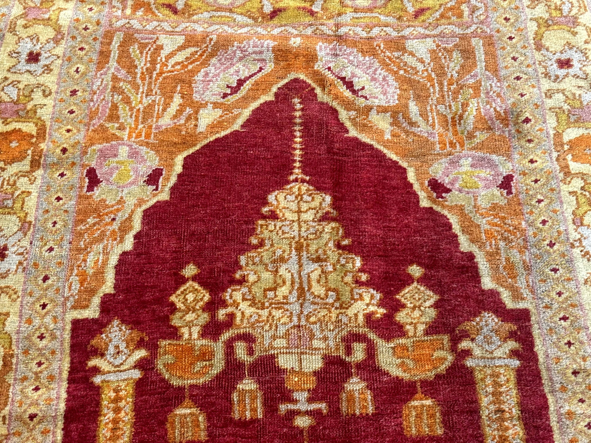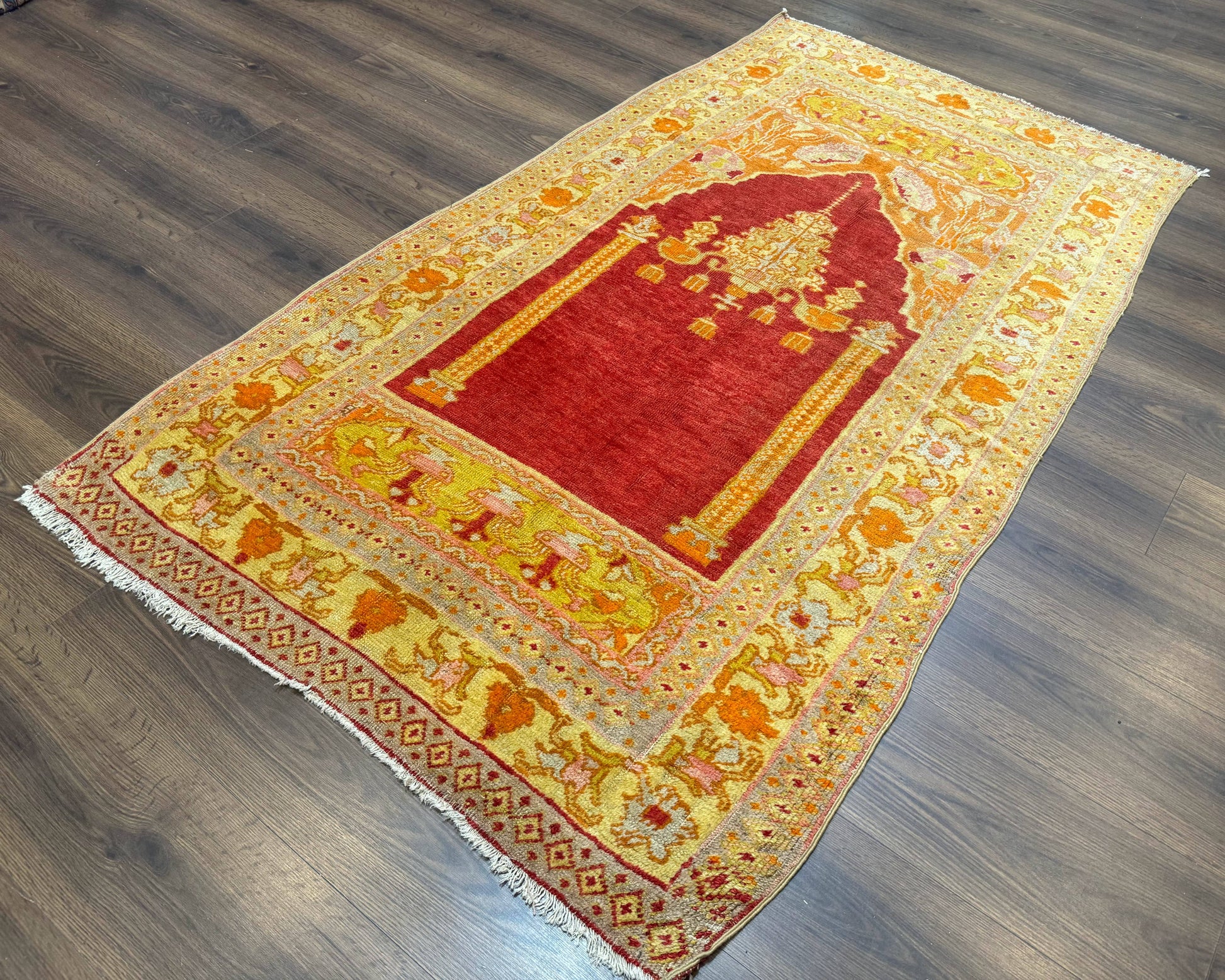 Antique Turkish Prayer Rug 4x6 Mihrab Design Hand Knotted Wool Anatolian Carpet