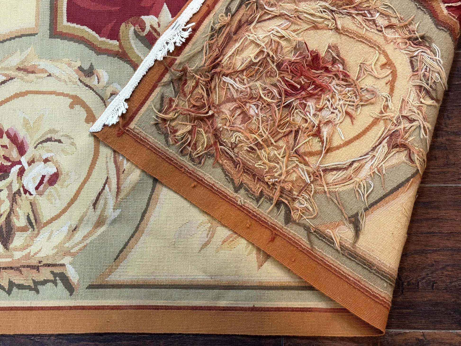 Aubusson Rug 4x6 Red Floral European Design Vintage Wool Handwoven