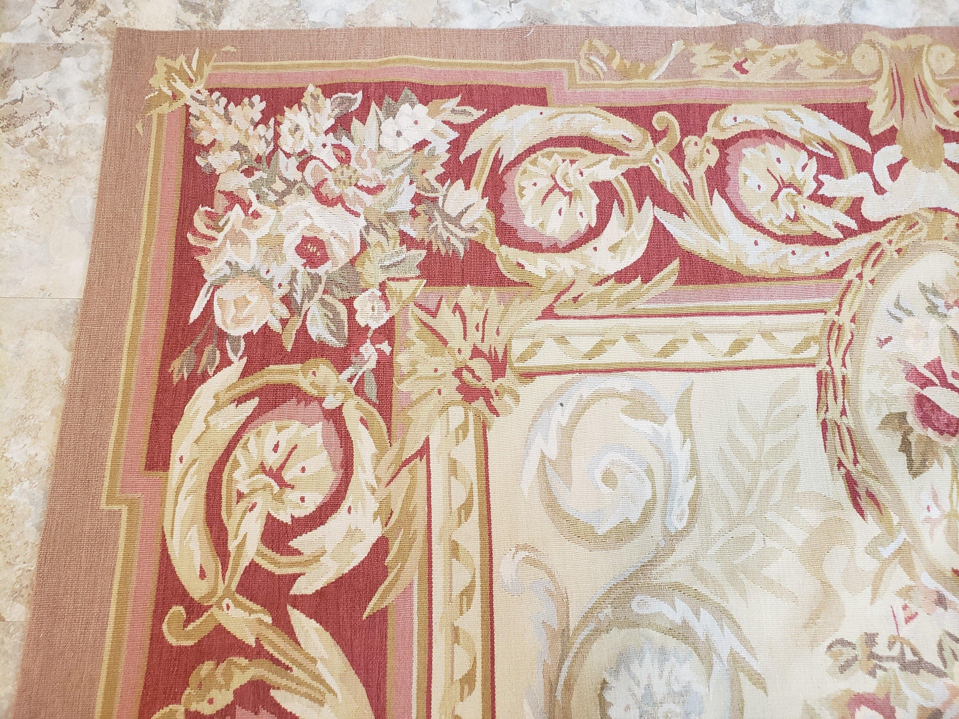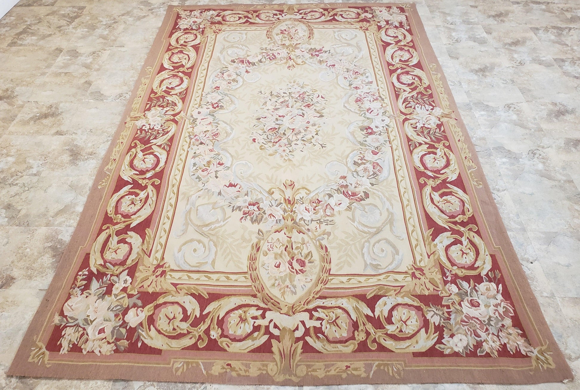 Aubusson Rug 6x9 Flatweave Wool Hand Woven Cream And Red