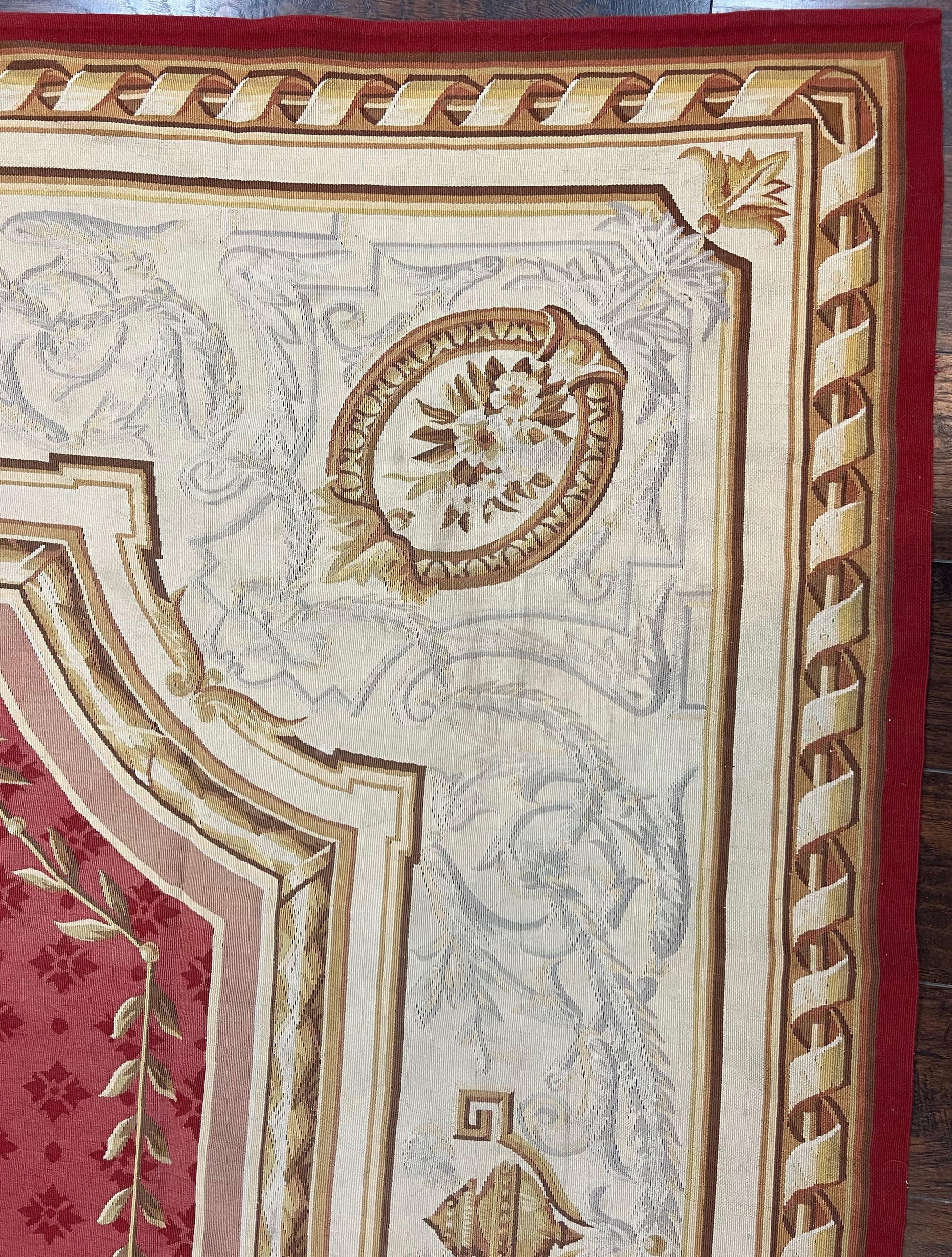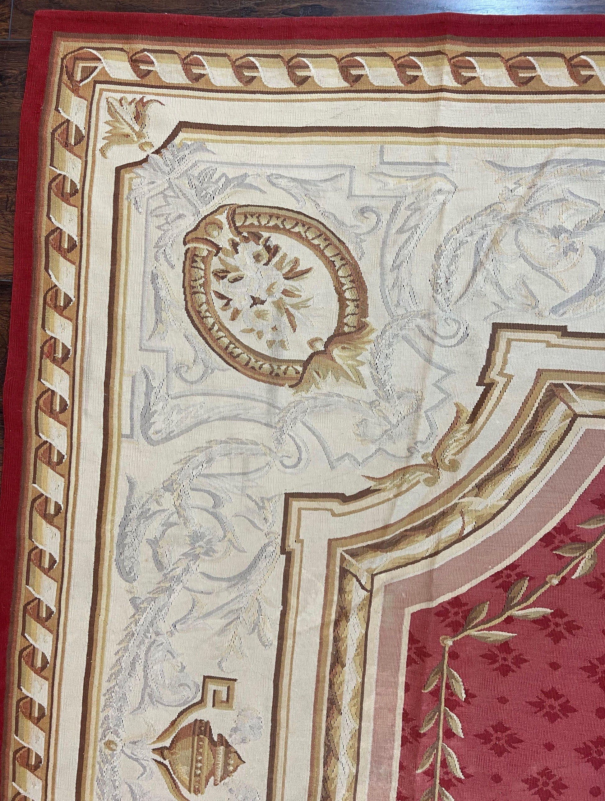 Elegant Aubusson Rug 9x12 Handmade Wool Carpet Red Ivory Vintage French Design