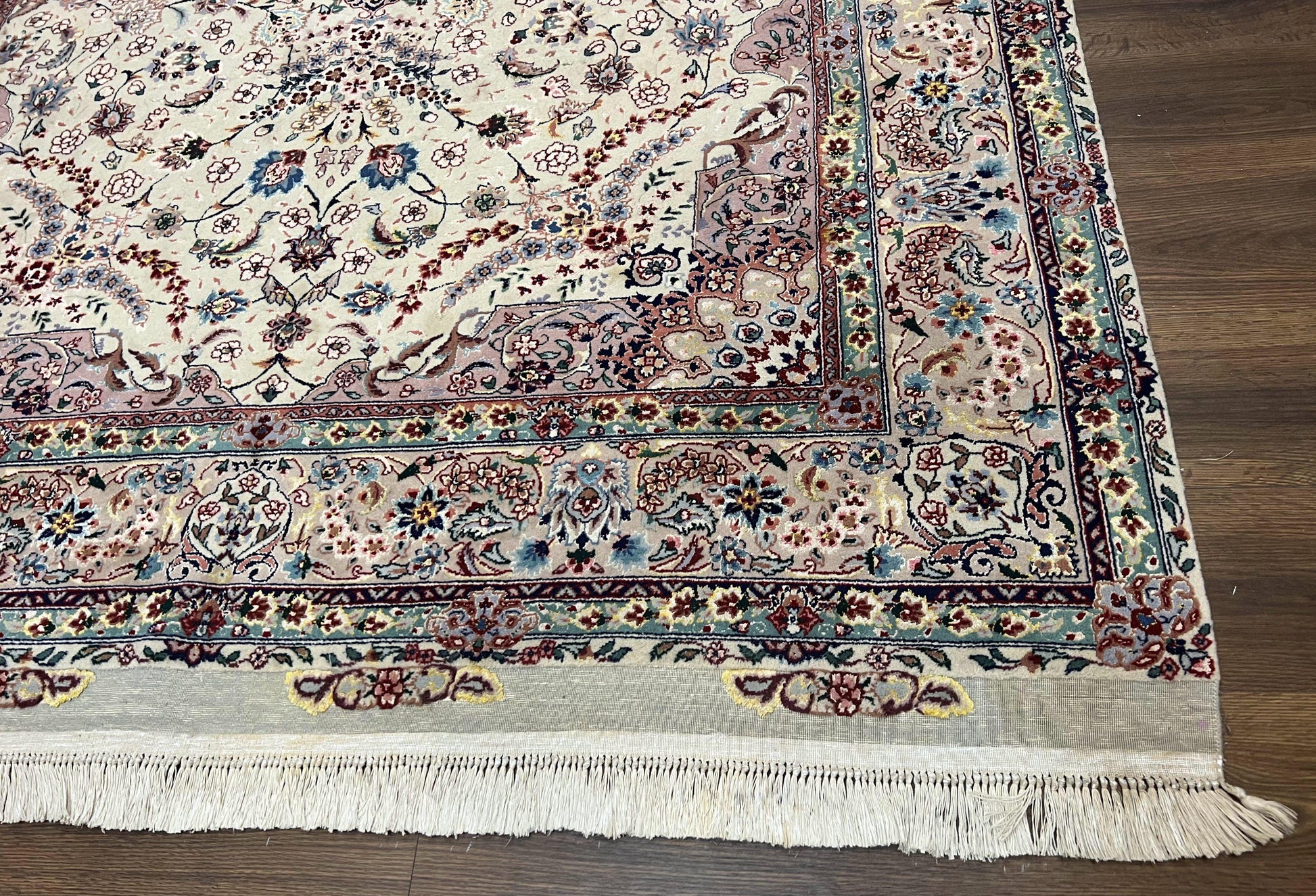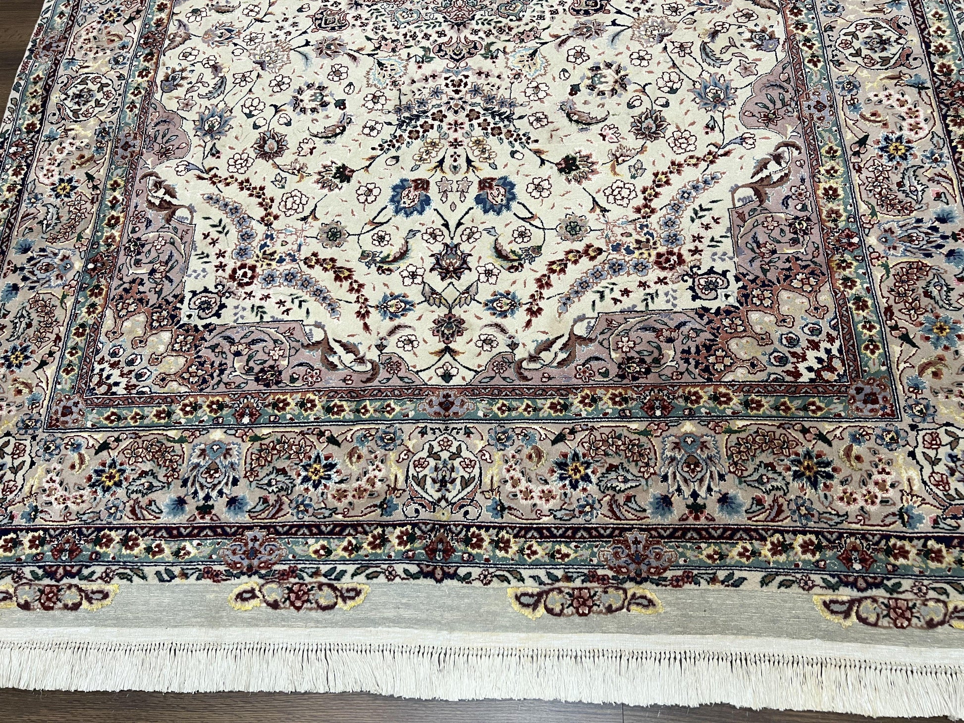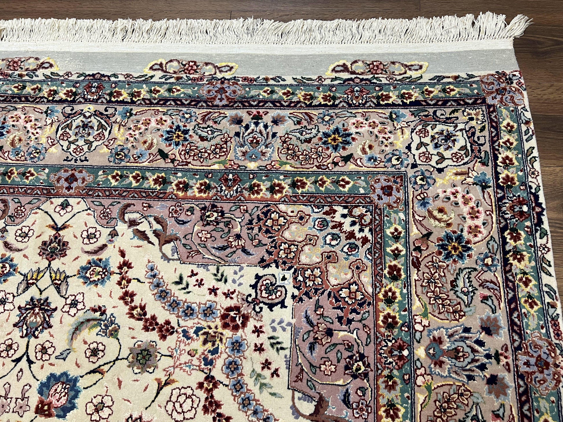 Persian Rug 6x9 Floral Medallion Wool Silk Handmade Vintage Oriental Cream Gray