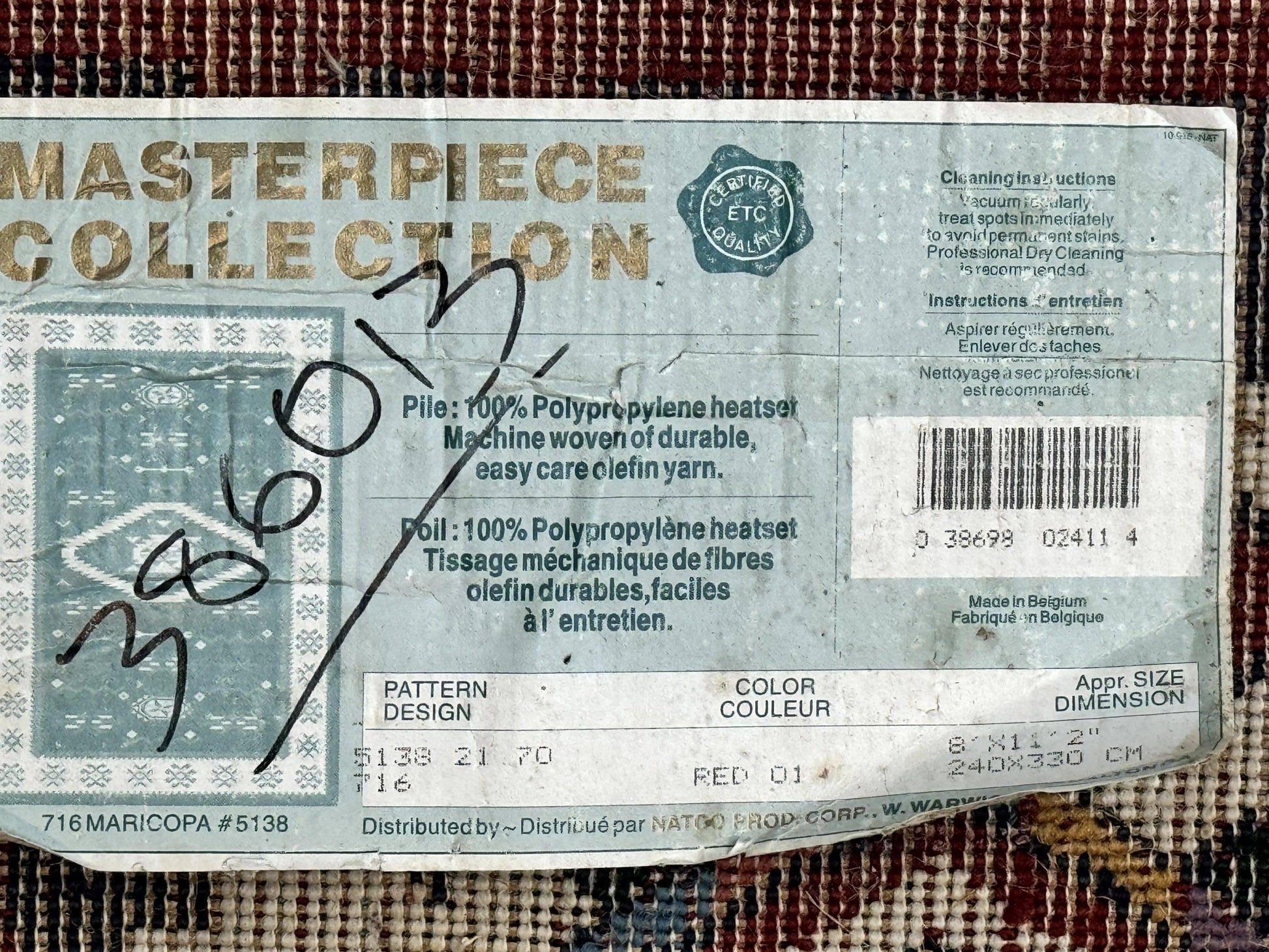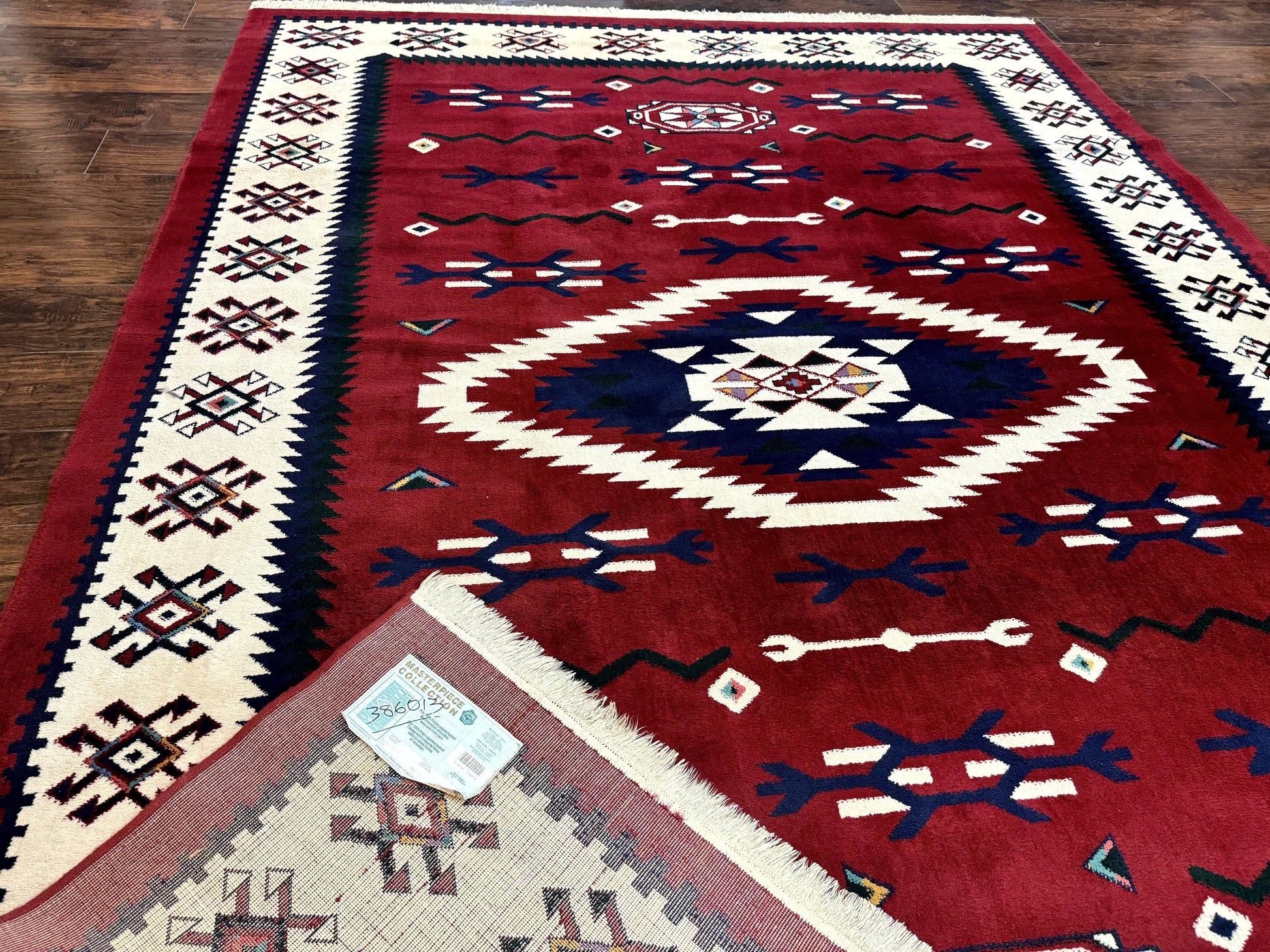 Power Loomed Navajo Area Rug 8x11 Dark Red Ivory Bohemian Tribal Design
