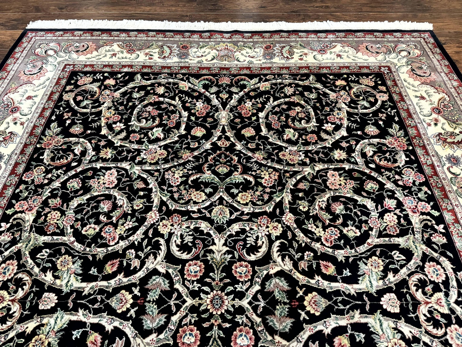 Black Pak Persian Rug 8x11 Hand Knotted Wool Silk Highlights Floral Vintage 200 KPSI