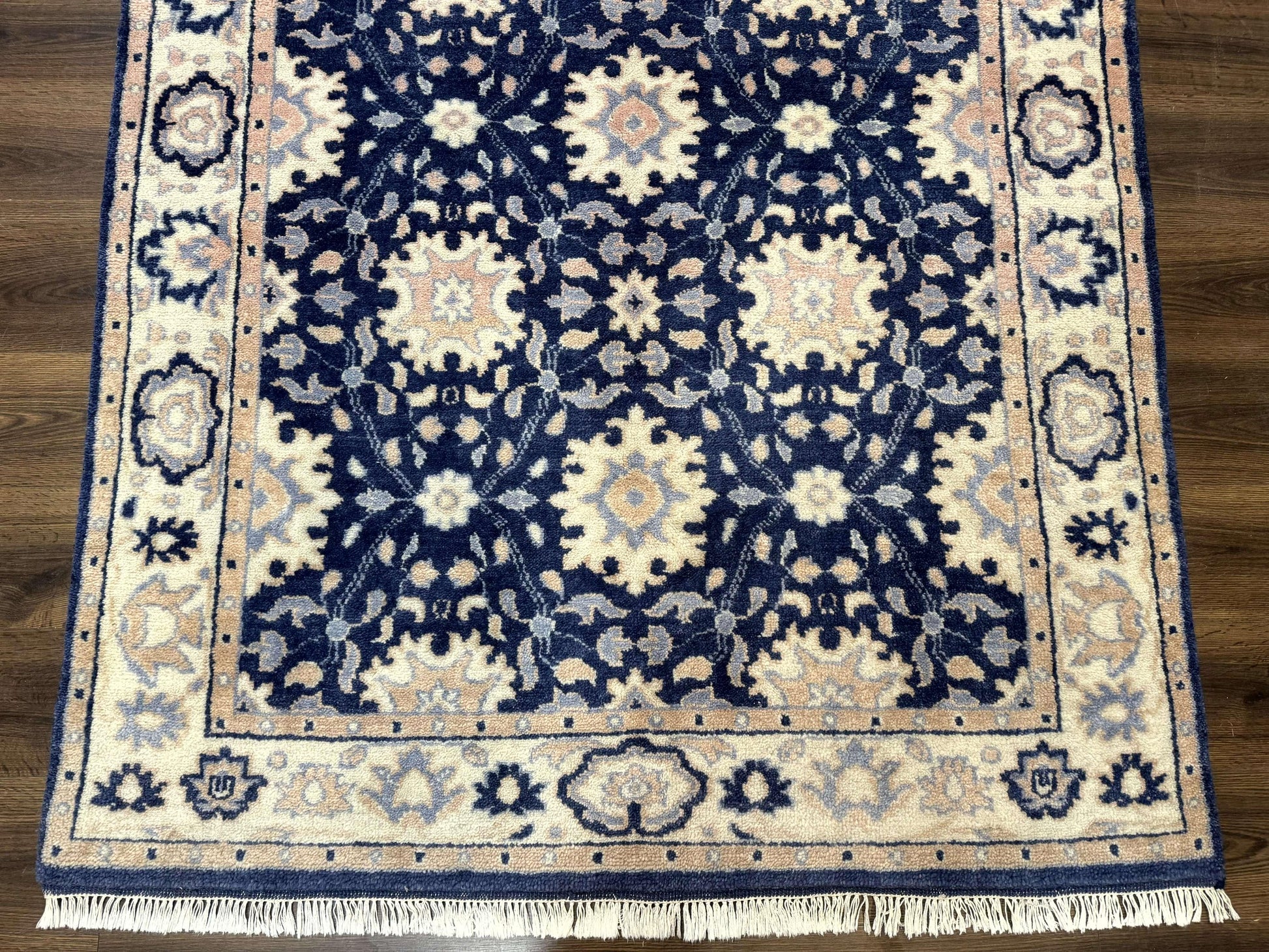 Discover the timeless elegance of a vintage Indo-Persian rug — a handmade, hand-knotted wool masterpiece designed to elevate living rooms, bedrooms, or entryways. Crafted in India with the classic blue and oat tones, it brings warmth, texture, and character to any space.