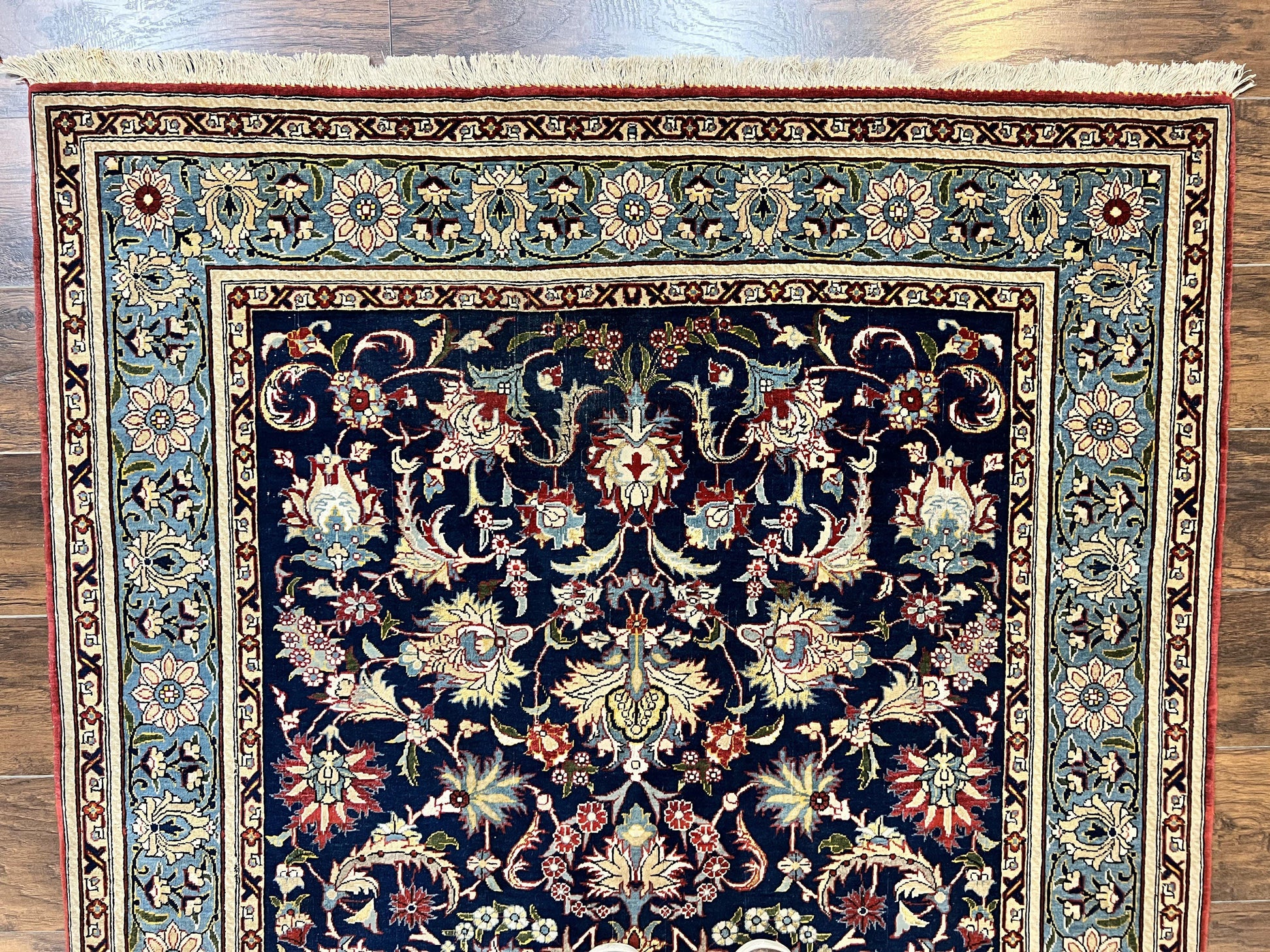 Blue Persian Rug Qum Hand Knotted Wool 5x7