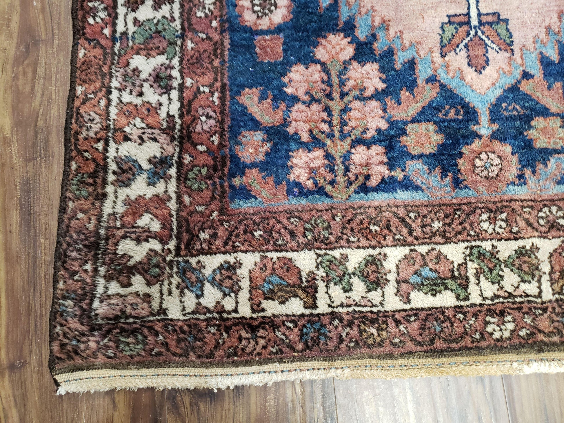 Blue Vintage Persian Hamadan Rug Hand Knotted Wool 4x6 Ft 1950s