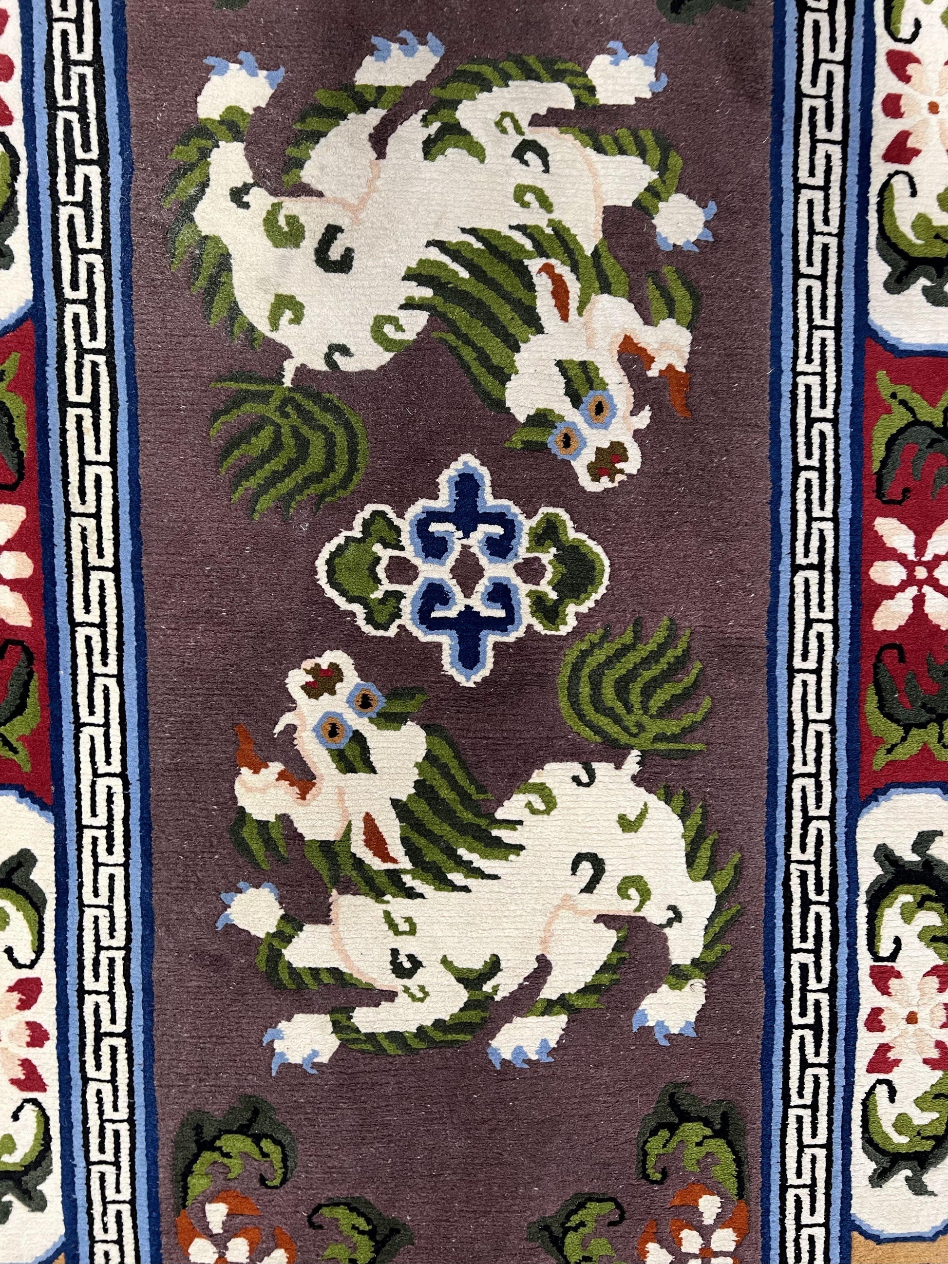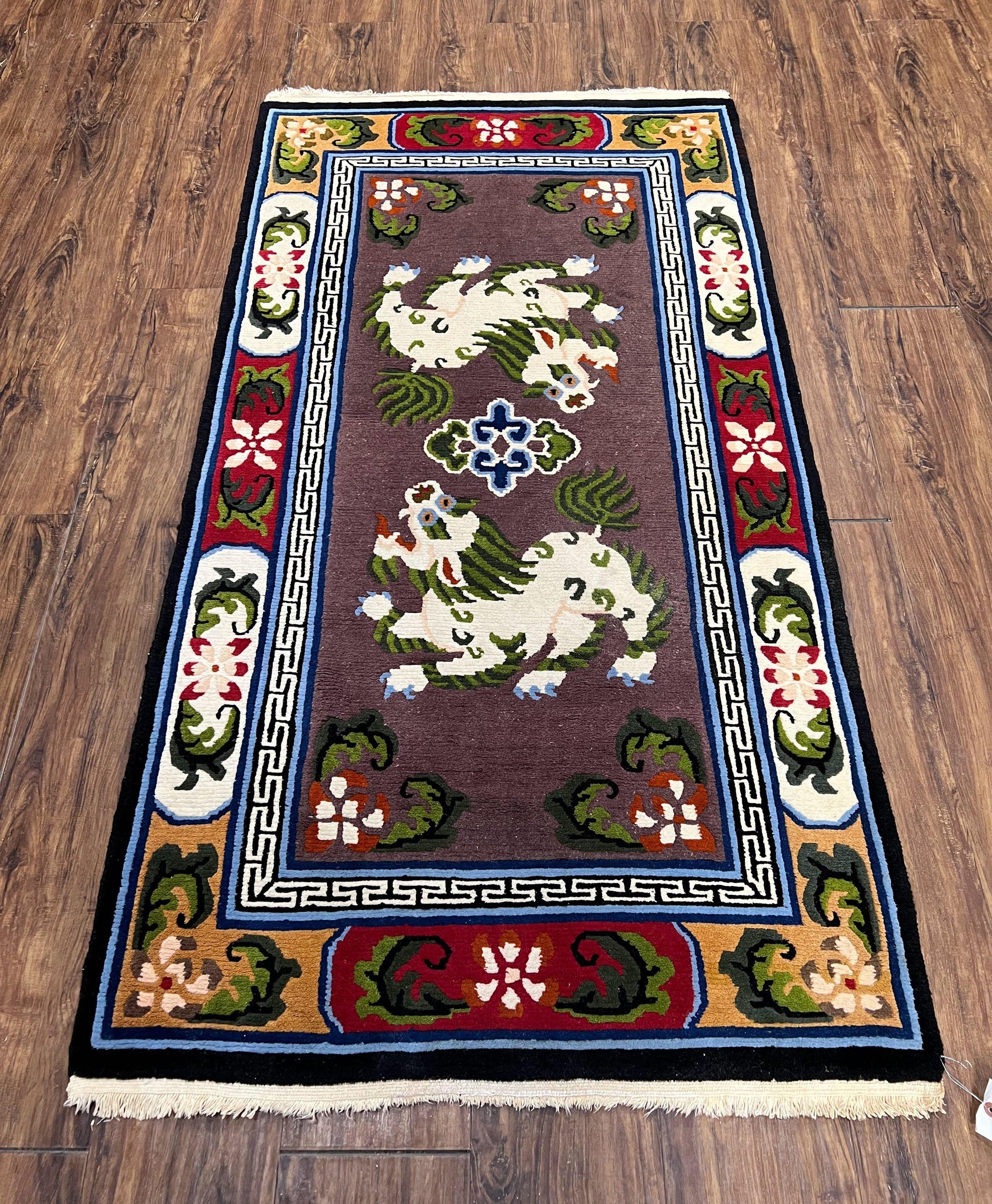 Chinese Art Deco Rug 3x5.5 Hand Knotted Wool With Animal Pictorials Vintage Peking Carpet