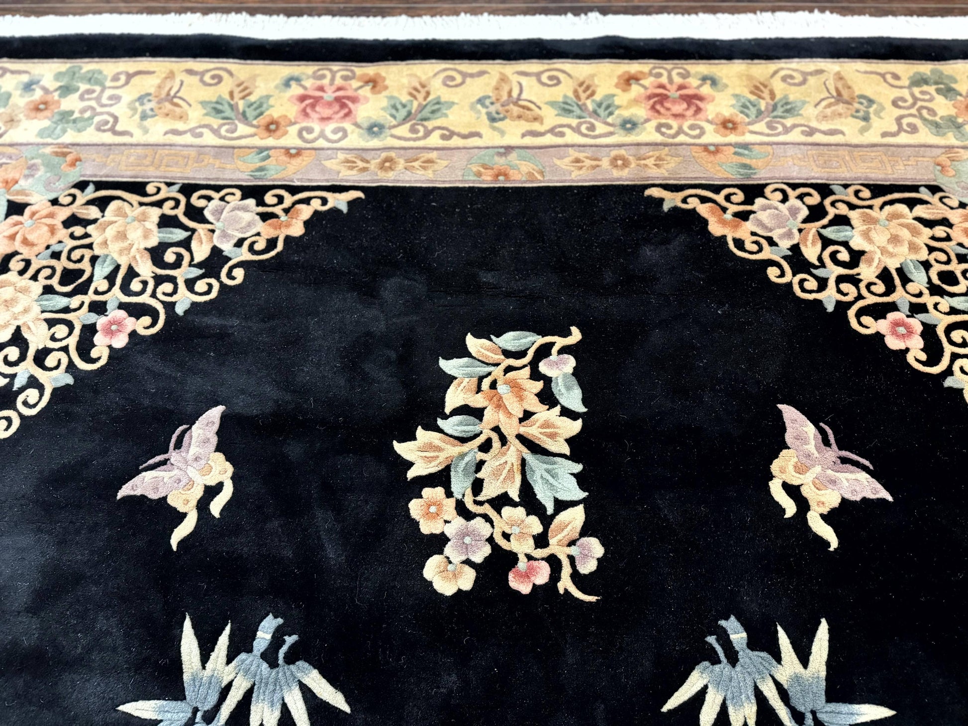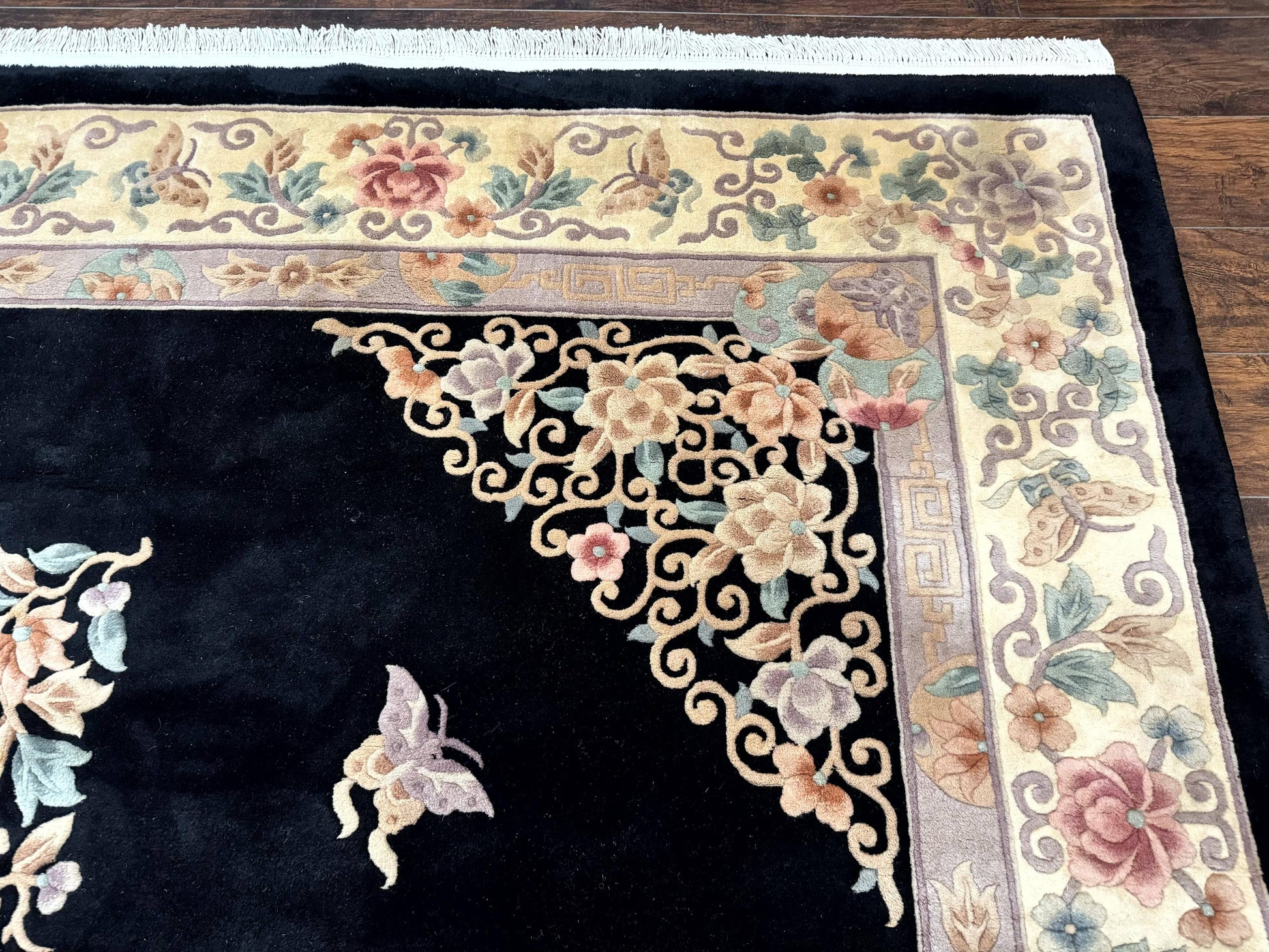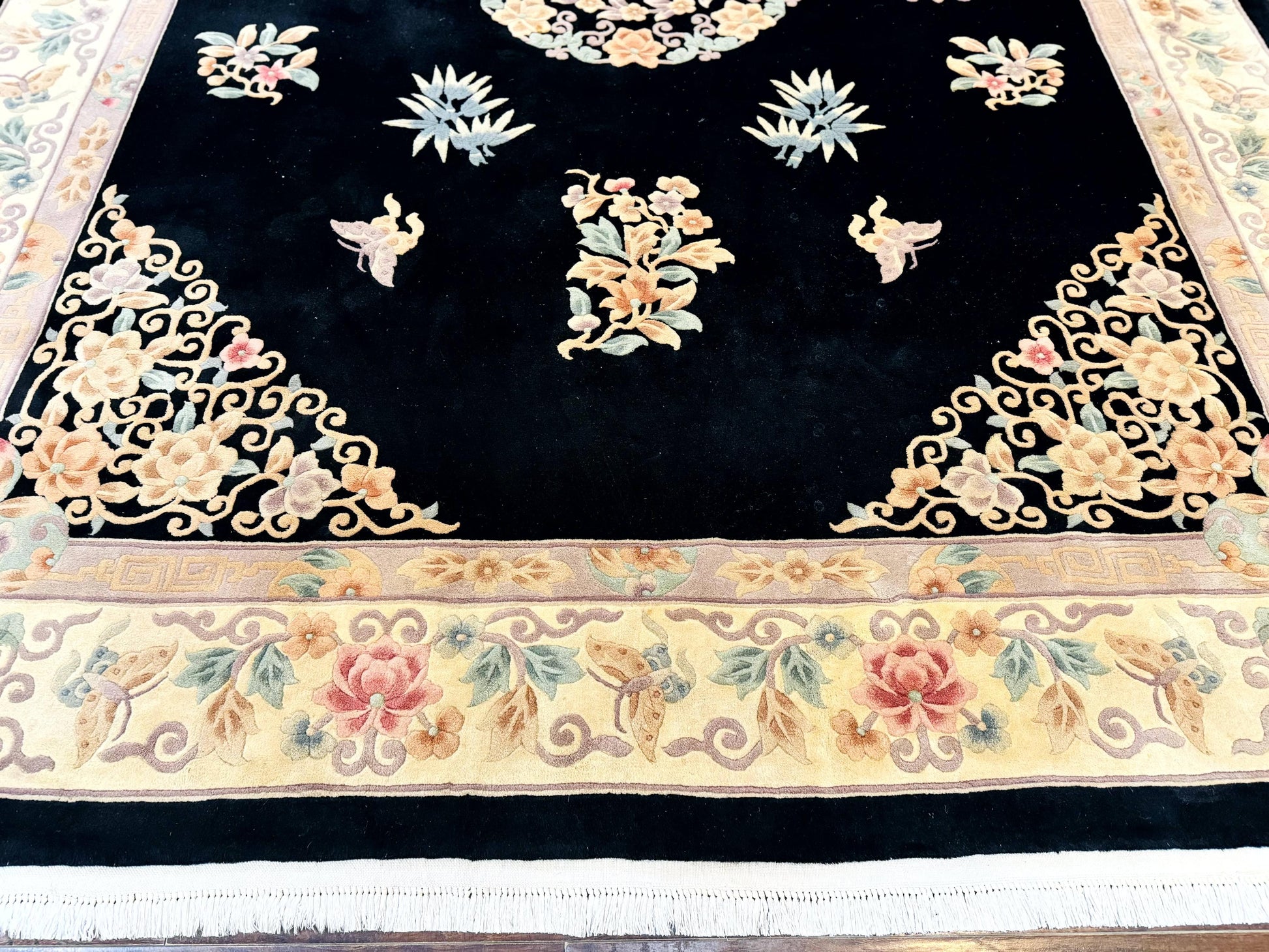Chinese Wool Rug Hand Knotted Vintage Floral Medallion 9x12 Oriental Carpet