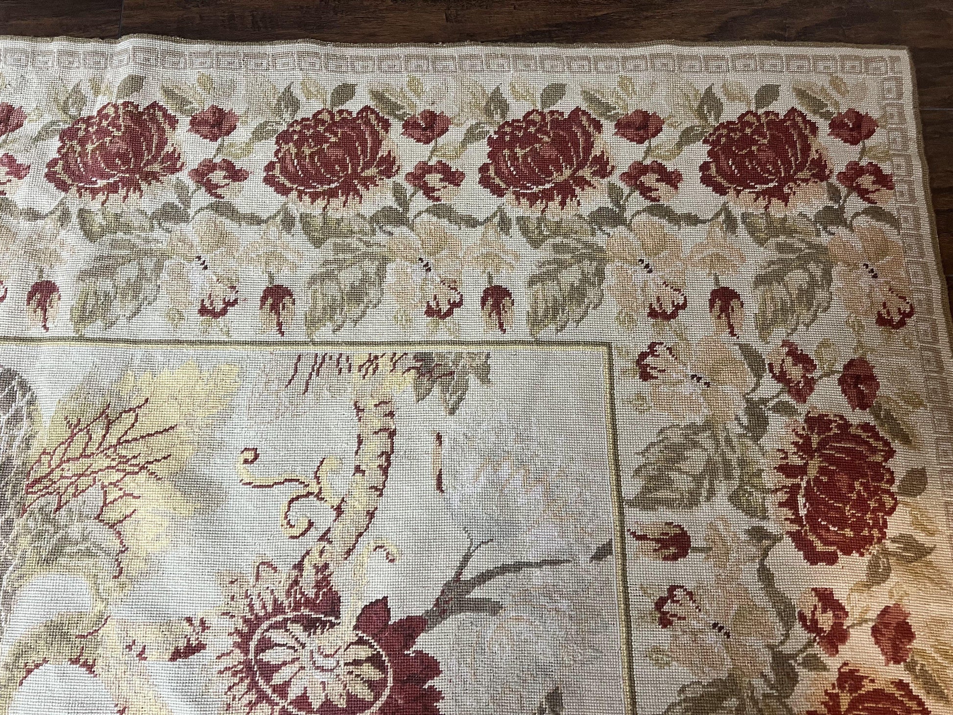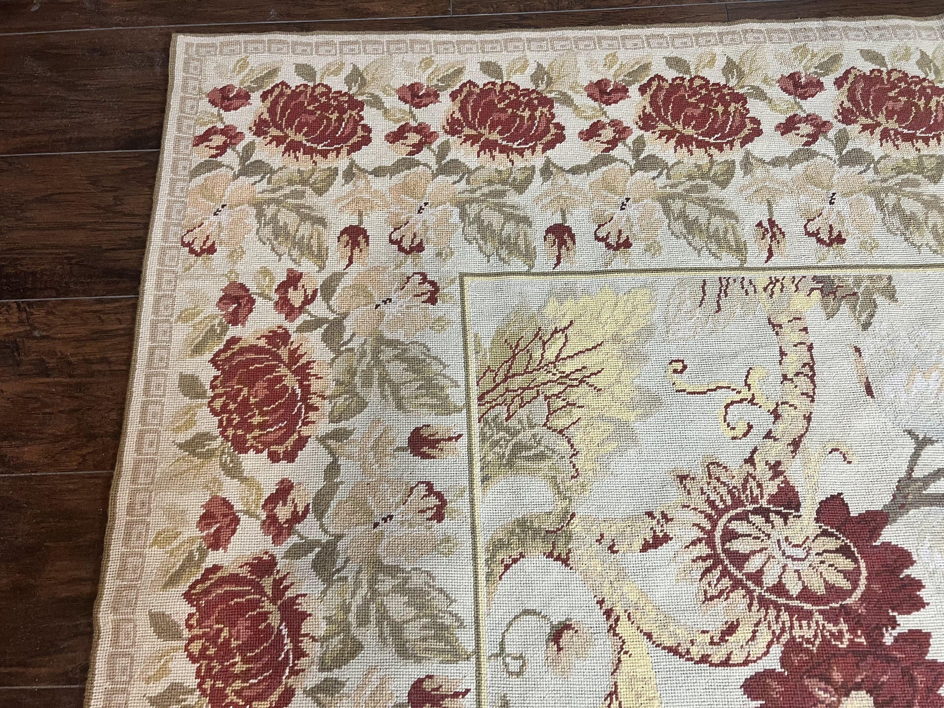 - Rug Details: Needlepoint style rug; rare vintage piece (Rug Number NIN14009-JM-ROLL, SKU 2306L044)