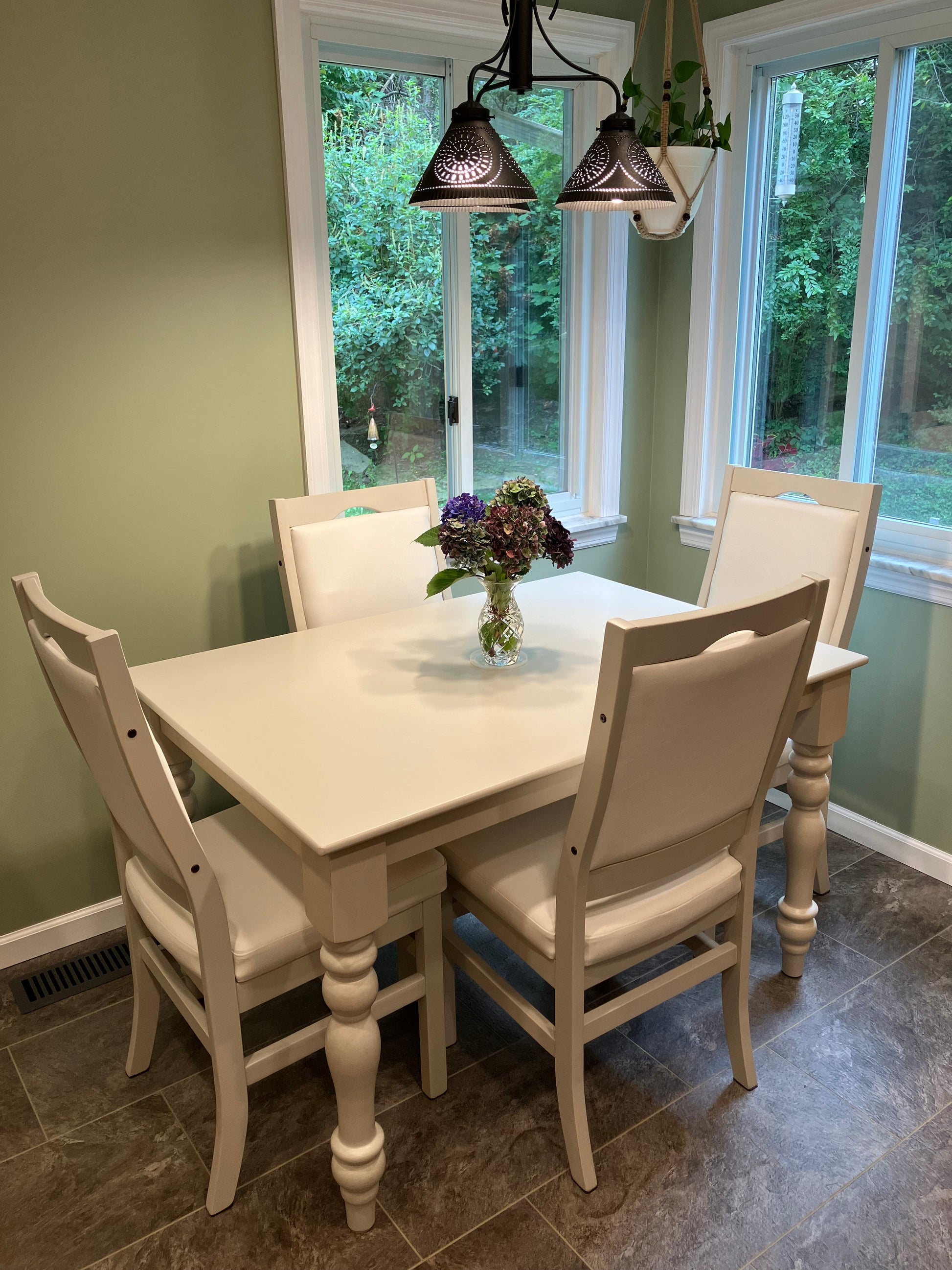 - Fully customizable design — pick your fabric and stain colors to match your decor