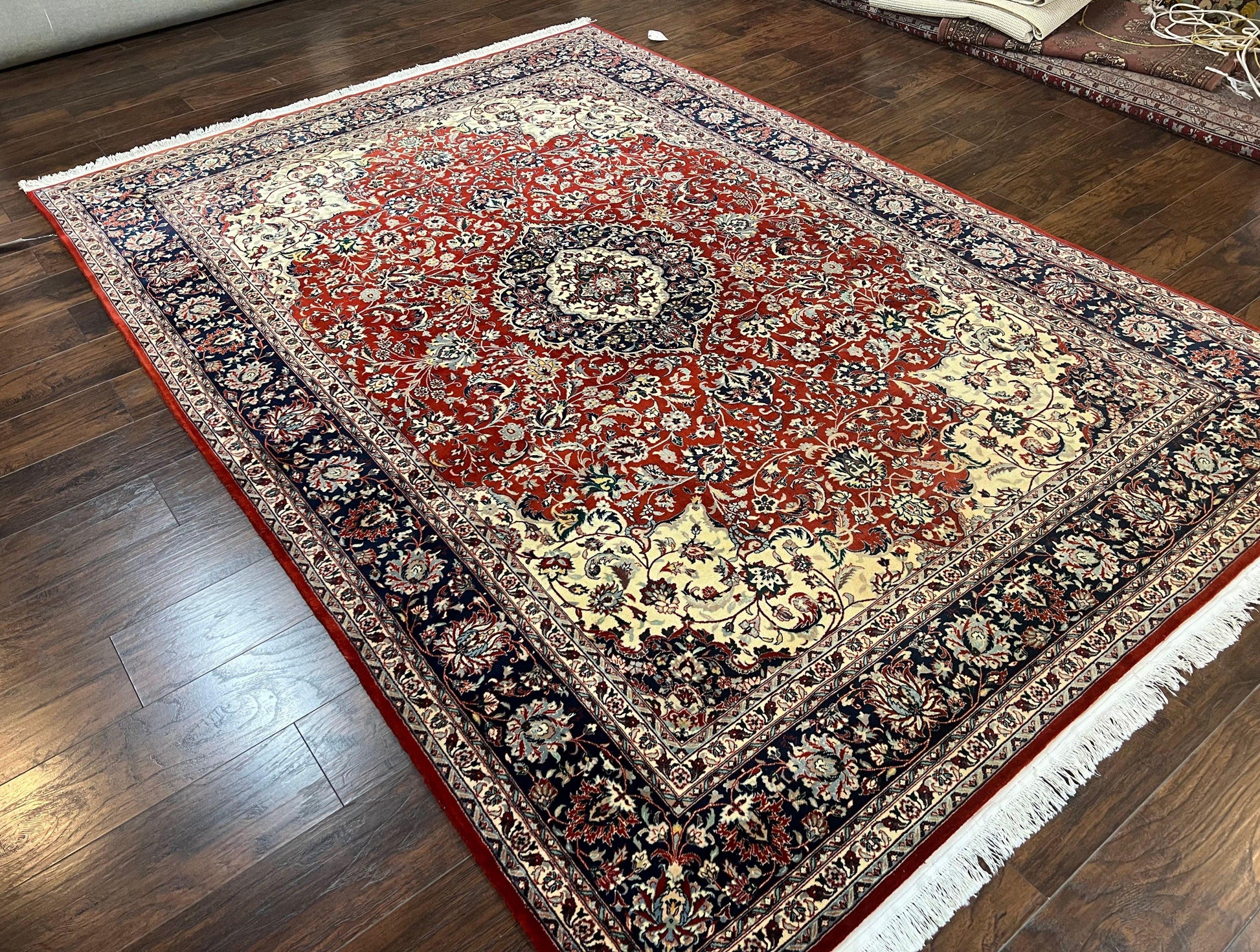 Hand Knotted Persian Rug 7x10 Vintage Wool Floral Medallion Carpet