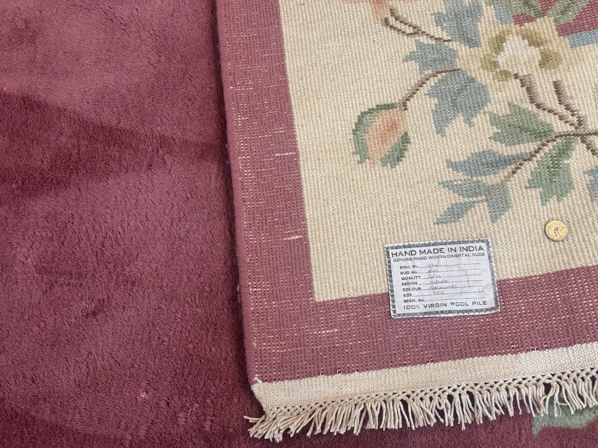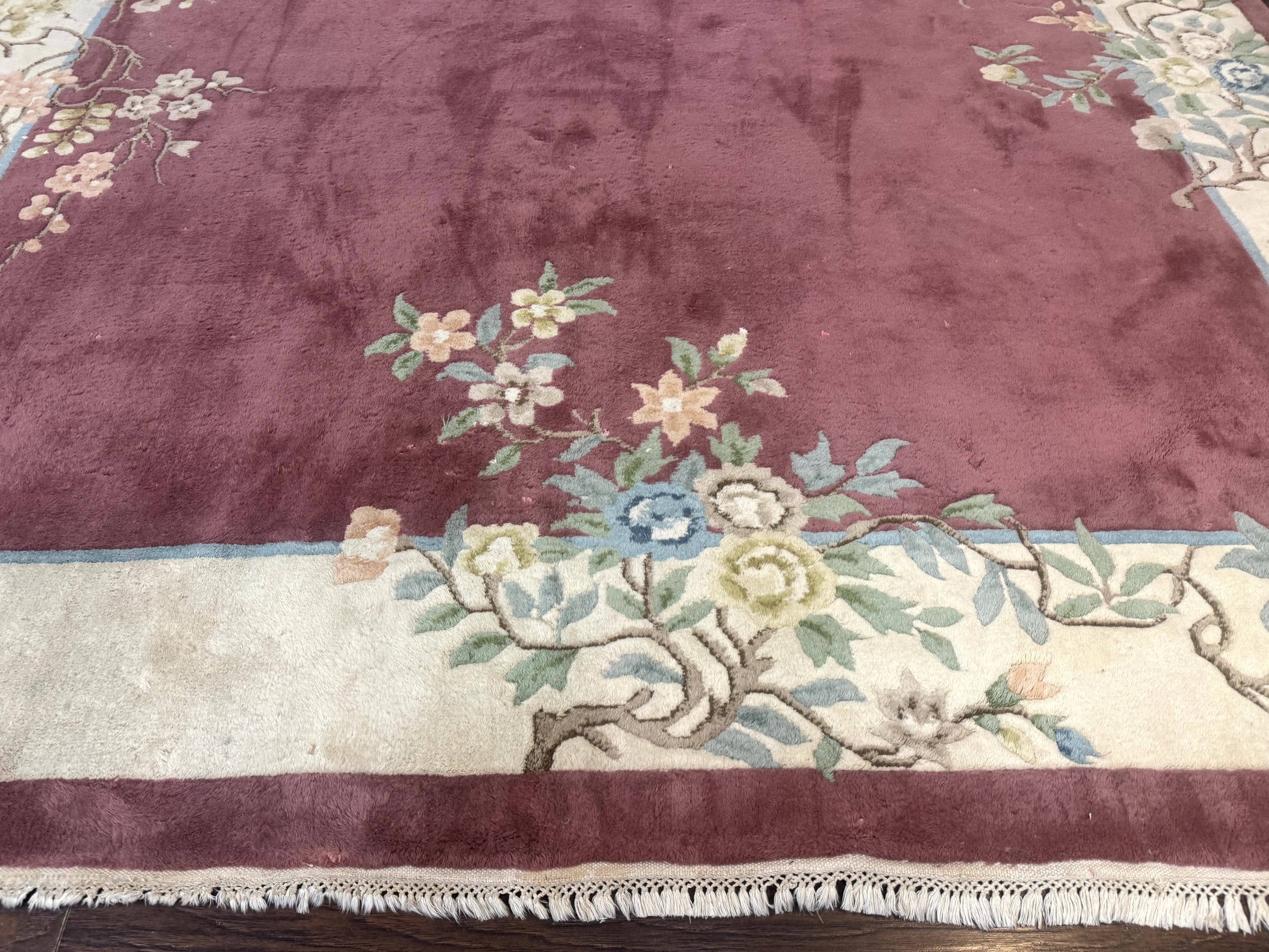 Indo Chinese Art Deco Rug 9x12, Pink and Ivory, Open Filed, Floral, Wool