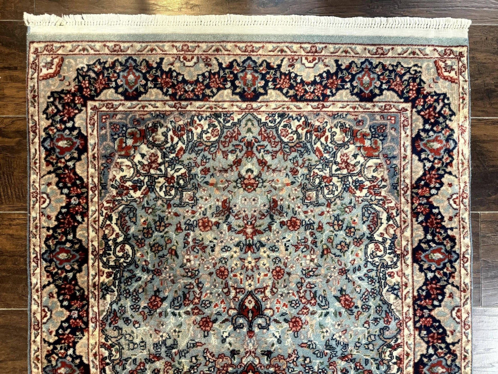 Indo Persian Kerman Rug 3x5 Light Blue Floral Medallion Handwoven Wool