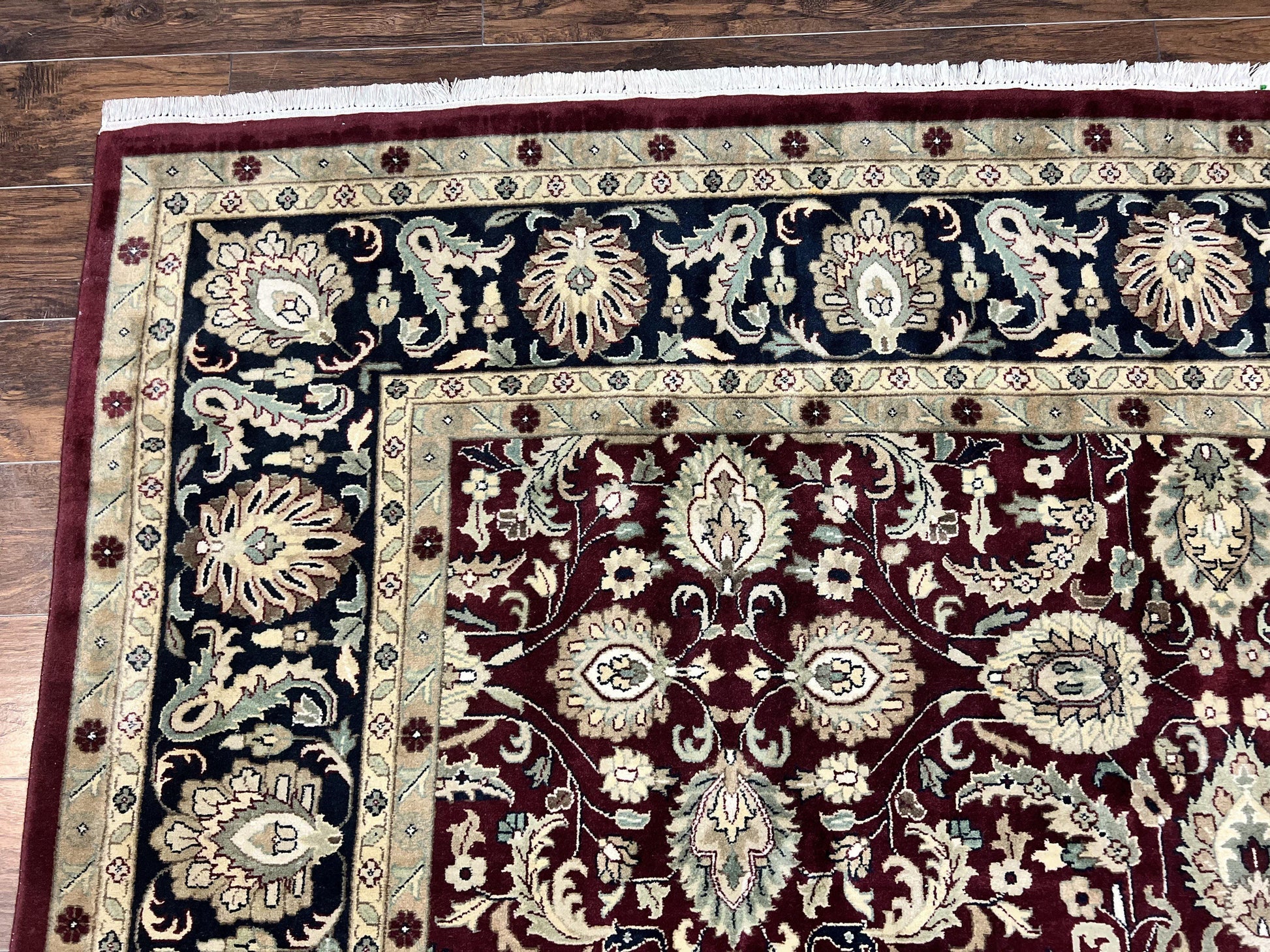 Indo Persian Rug 10x14, Floral Allover, Maroon, Handmade Hand Knotted VIntage Wool Rug, Large Oriental Carpet