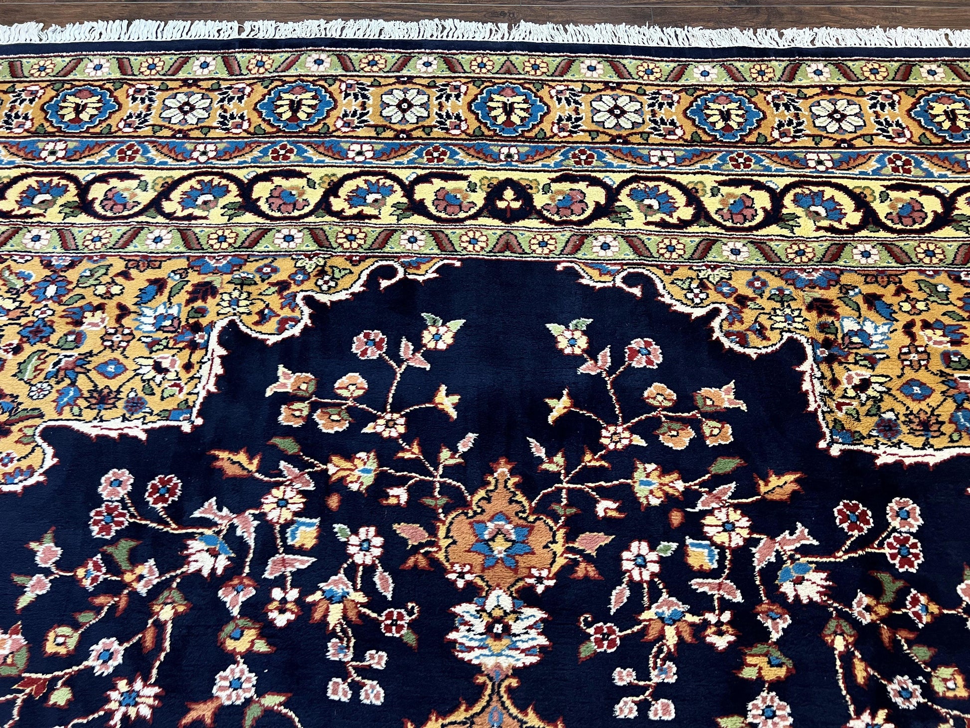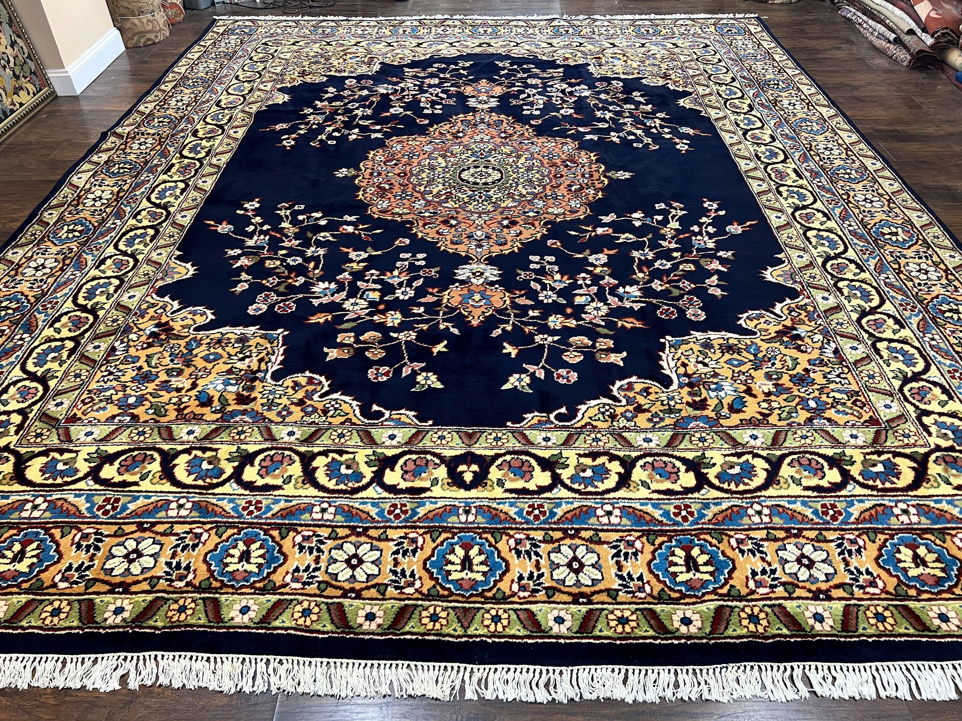 Indo Persian Rug 12x15, Mahal Sarouk Rug 12 x 15, Wool Hand Knotted Vintage Carpet, Navy Blue, Oversized Rug, Center Medallion