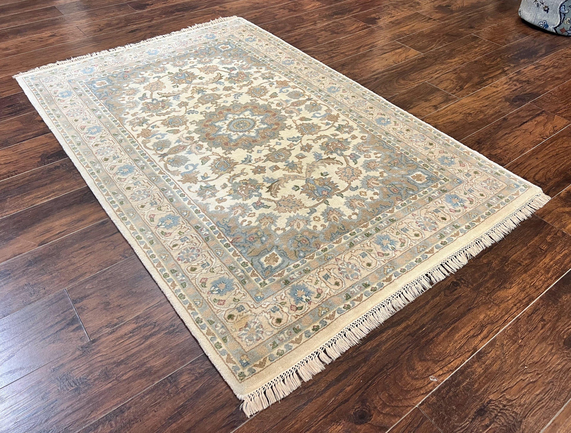 Indo Persian Rug 4x6 Floral Medallion Handmade Wool Beige Vintage Carpet