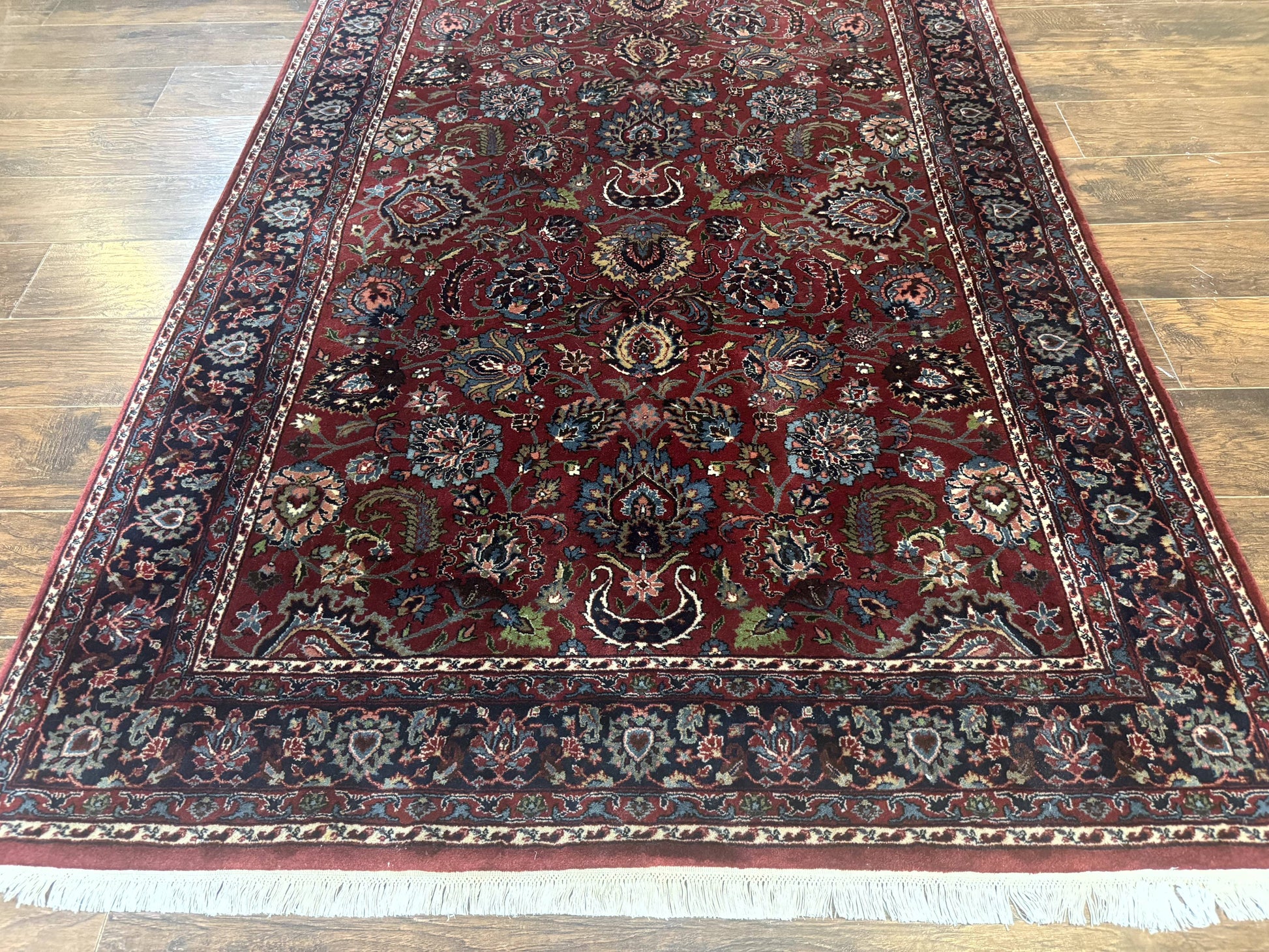 Indo Persian Rug 5x7 Vintage Floral Carpet Burgundy Navy Blue Handmade Wool