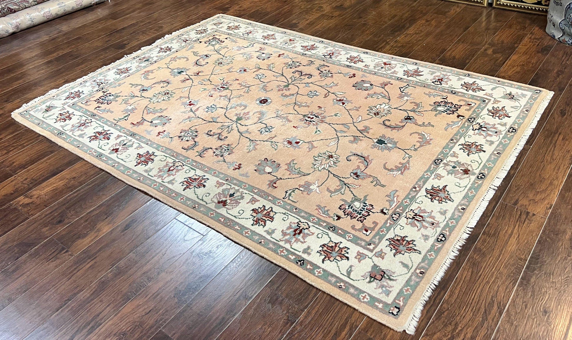 Indo Persian Rug 6x9 Handmade Vintage Wool Carpet With Floral Allover Design