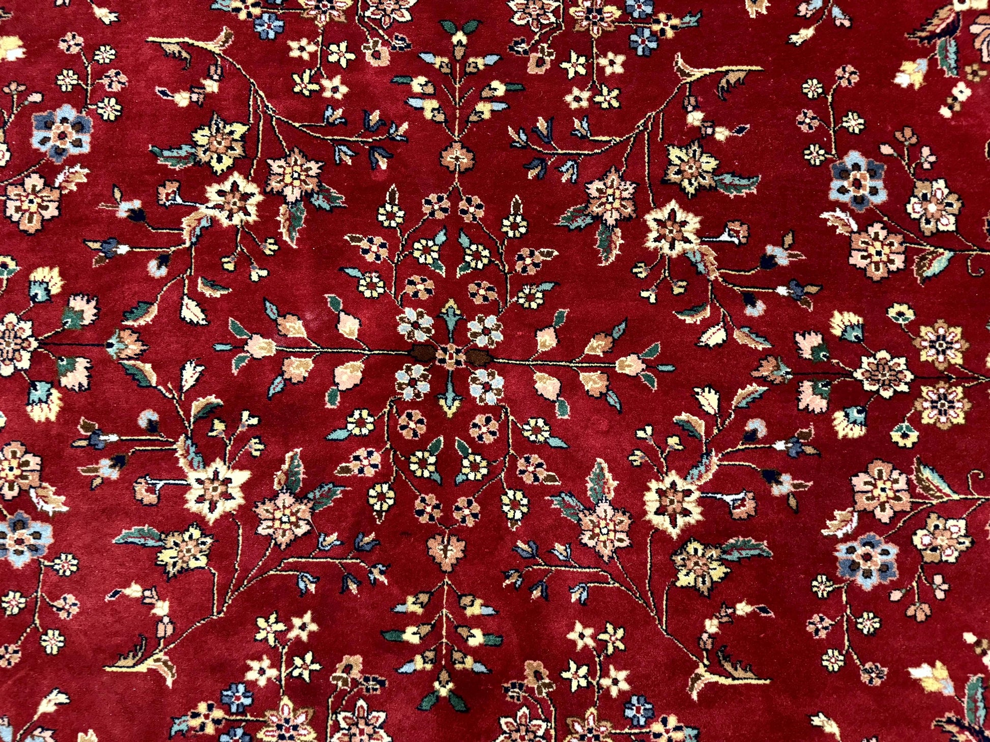 This rug delivers durability and timeless style with its hand-knotted wool construction, designed to endure daily wear while maintaining a refined appearance. The red and cream floral motif adds warmth and versatility, easily coordinating with a variety of color schemes and furnishings. Its generous 8' x 10' footprint helps define seating areas or anchor a larger room, creating a welcoming, grounded feel. With recent cleaning completed, it’s ready to elevate your space and provide years of use as a trusted centerpiece.
