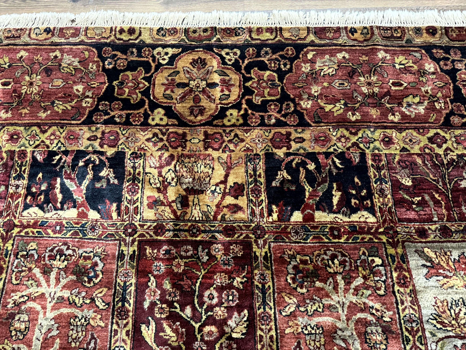 Indo Persian Rug 9x12, Bakhtiari Panel Design, Multicolor, Soft Wool Pile