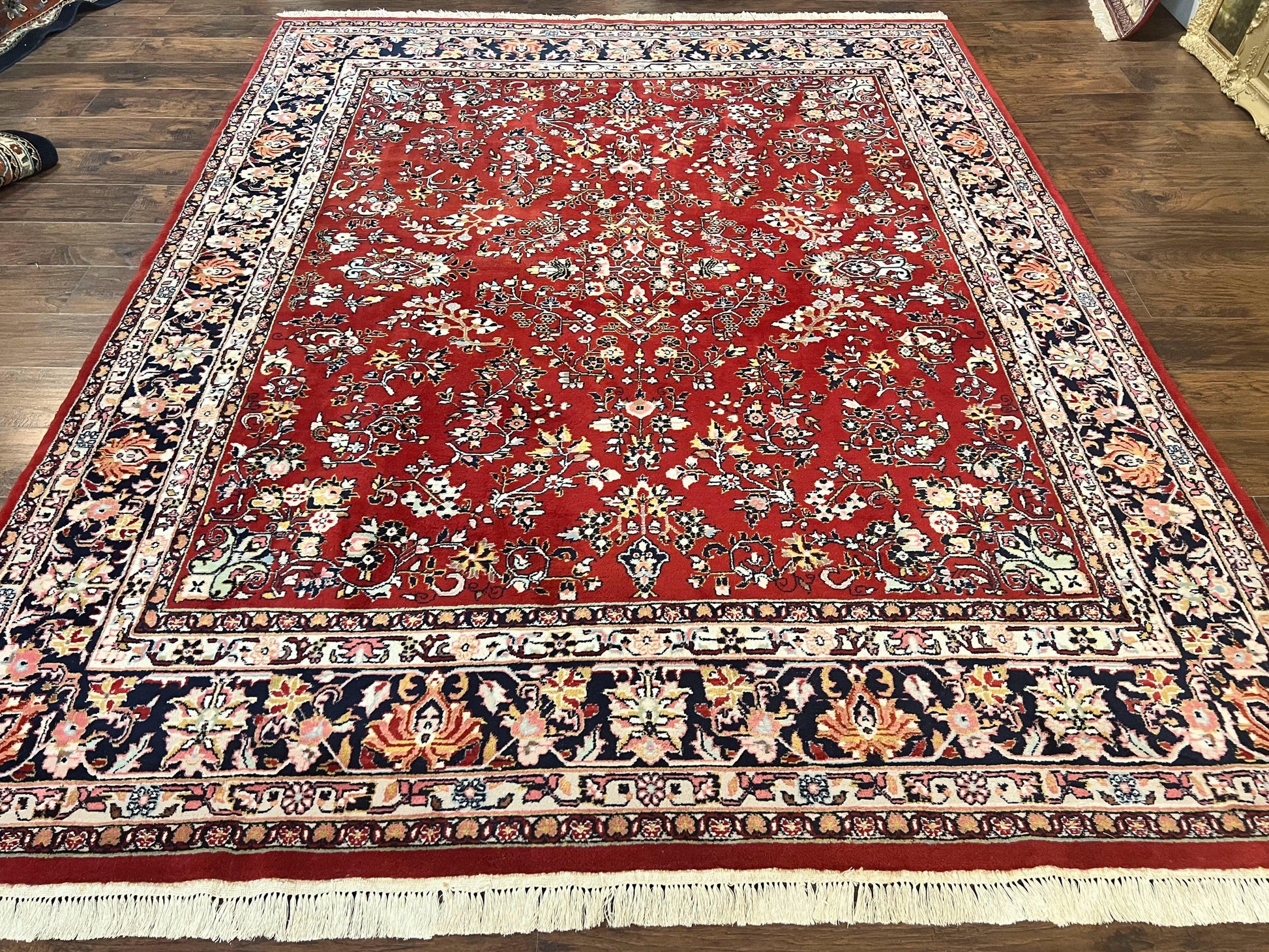 Indo Persian Sarouk Rug 8x10, Red, Floral Allover, Handmade Vintage Wool Carpet, Traditional Rug