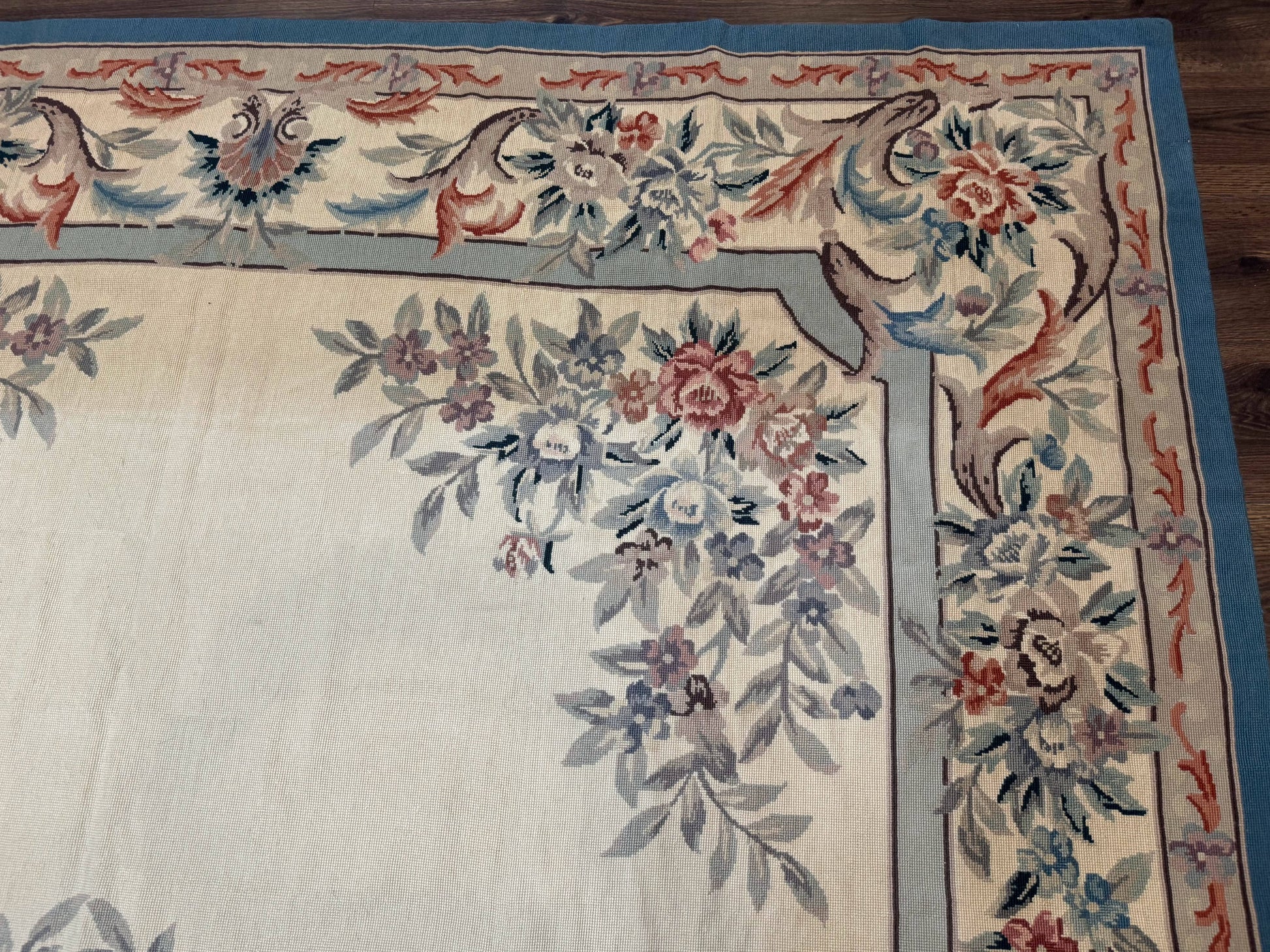 Ivory Needlepoint Rug 8x10, Wool Handmade Carpet