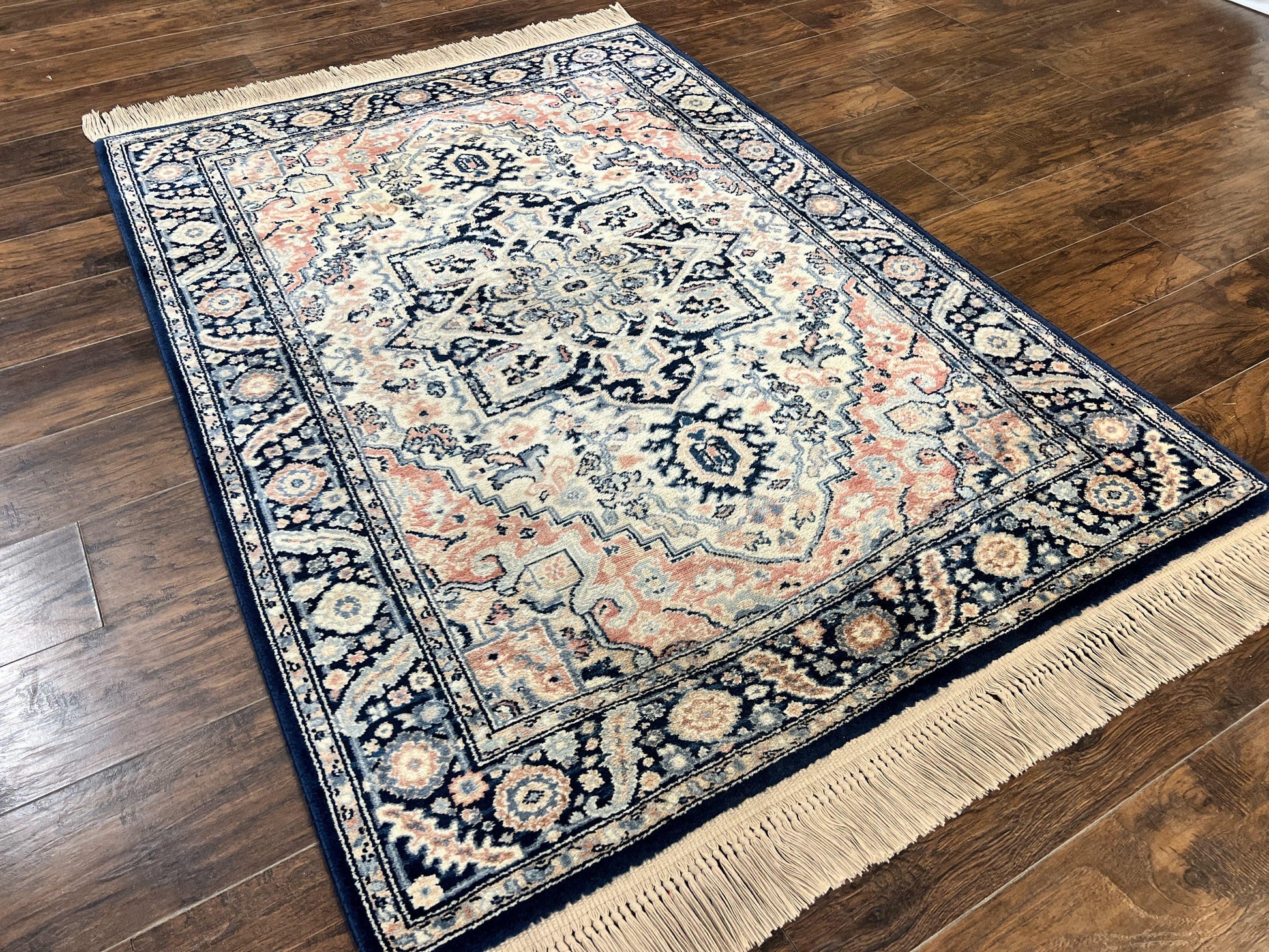 Karastan Blue Heriz Rug #748, Vintage Wool Karastan Carpet 4.3 x 6, Discontinued Original 700 Series Karastan Area Rug