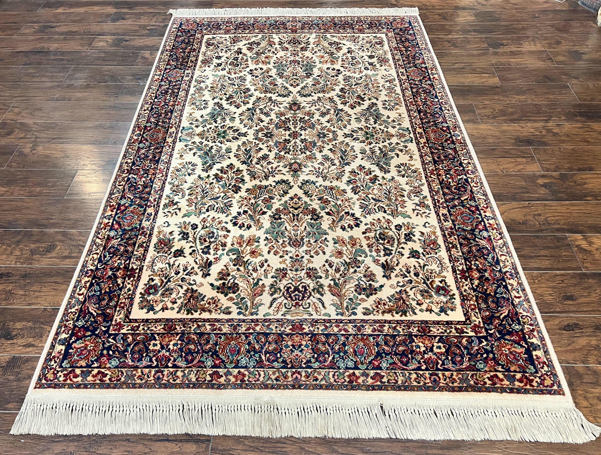 Karastan Rug 5.9 x 9 Ivory Sarouk #760, Vintage Wool Original Collection 700 Series, Discontinued