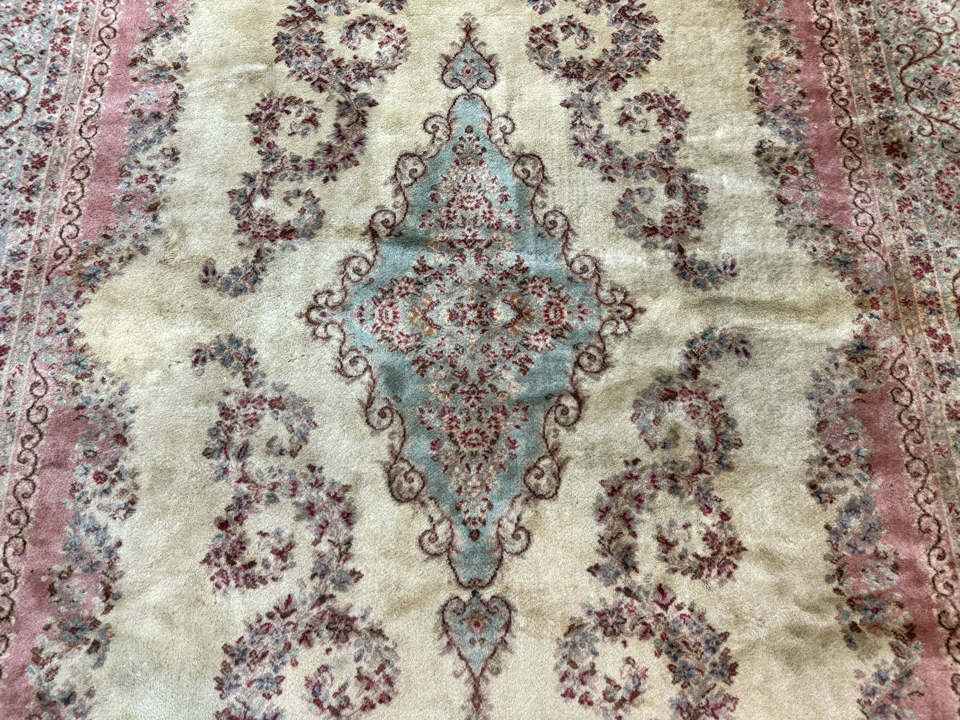 Karastan Kirman Rug Wool 8 By 12 Pastel Ivory Vintage Carpet Discontinued