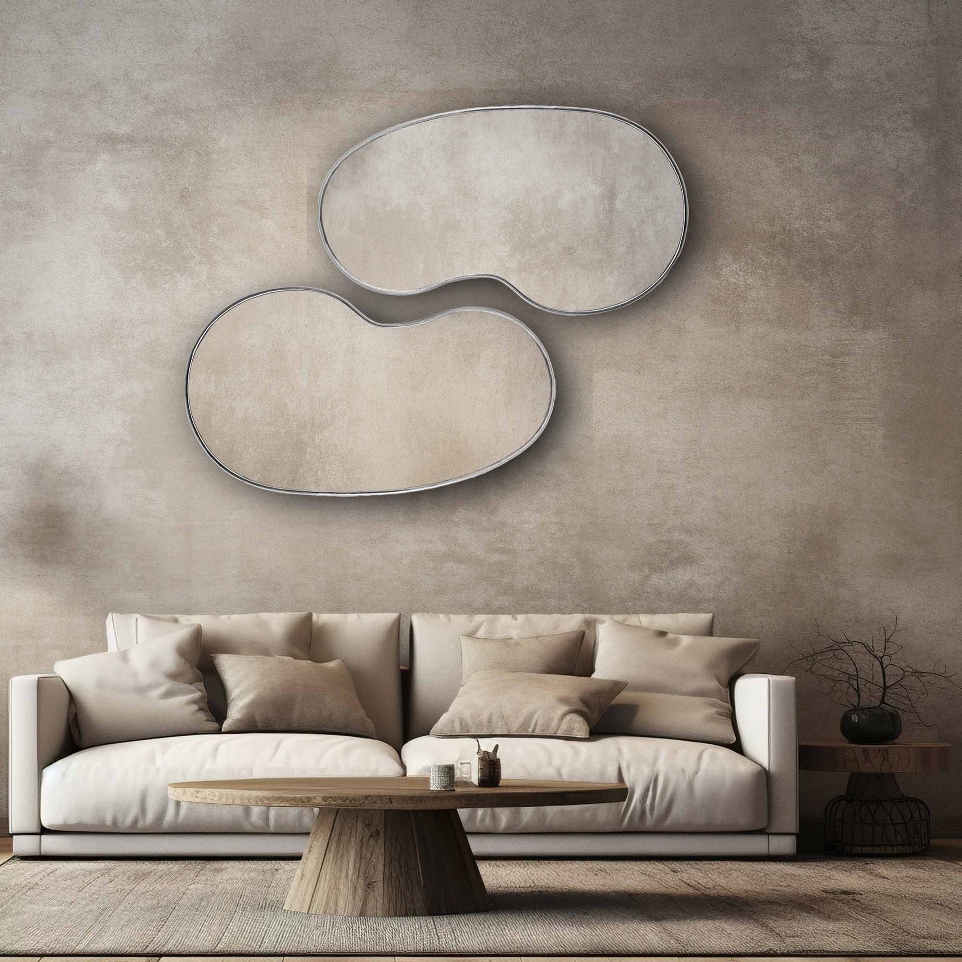 Kidny Unlacquered Brass Mirror , Silver Mirror.