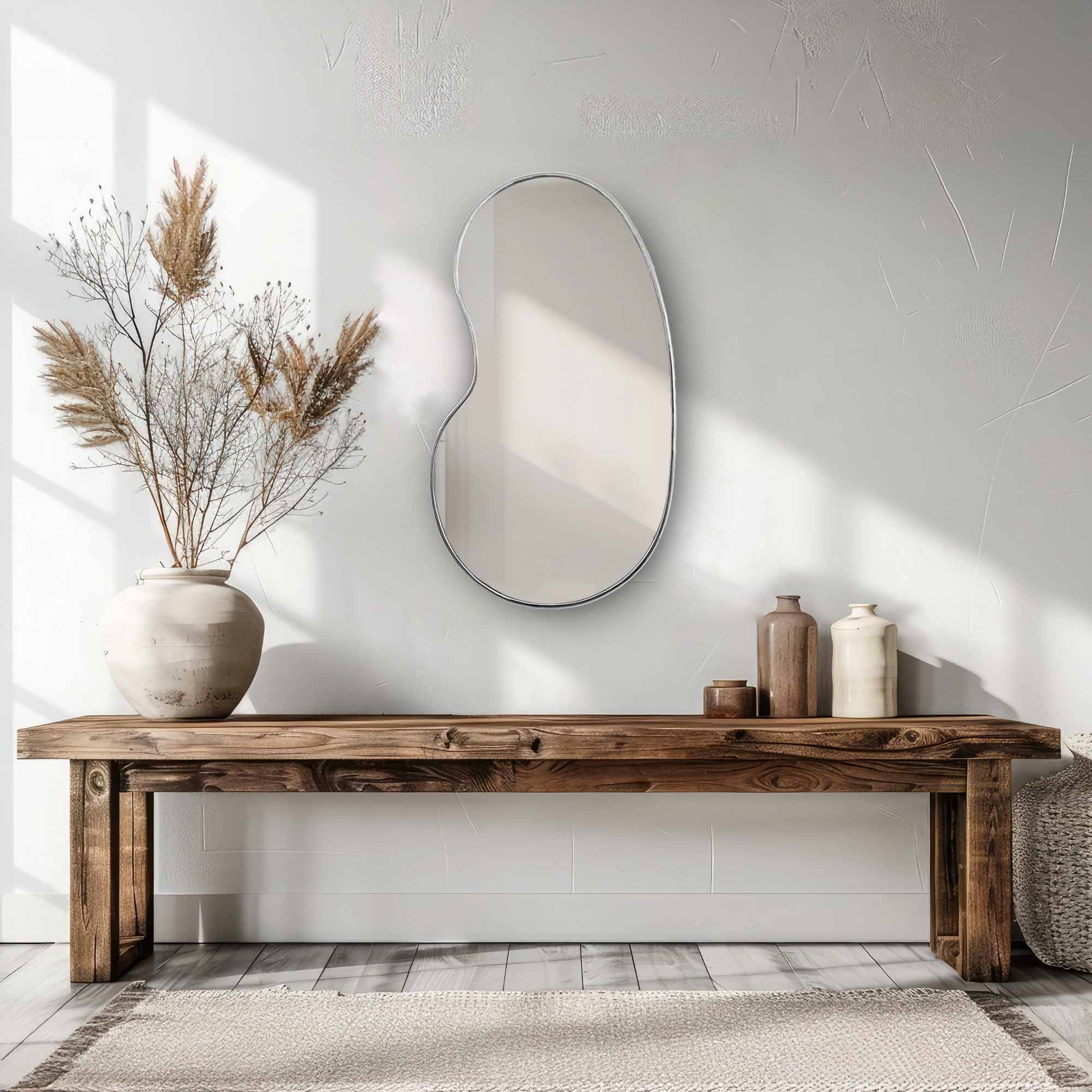 Indulge in the exquisite craftsmanship of our wall-hanging mirror, meticulously handcrafted with utmost care and precision. We pride ourselves on using only the finest materials, including premium metals like unlacquered brass, sturdy 4mm glass, and quality wood, ensuring both durability and timeless elegance in every aspect of its design.