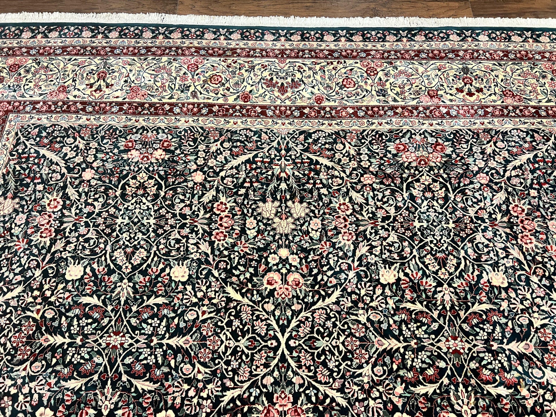 Premium Sino Persian Rug 10x14 Wool Hand Knotted Kirman Floral Dark Green Beige