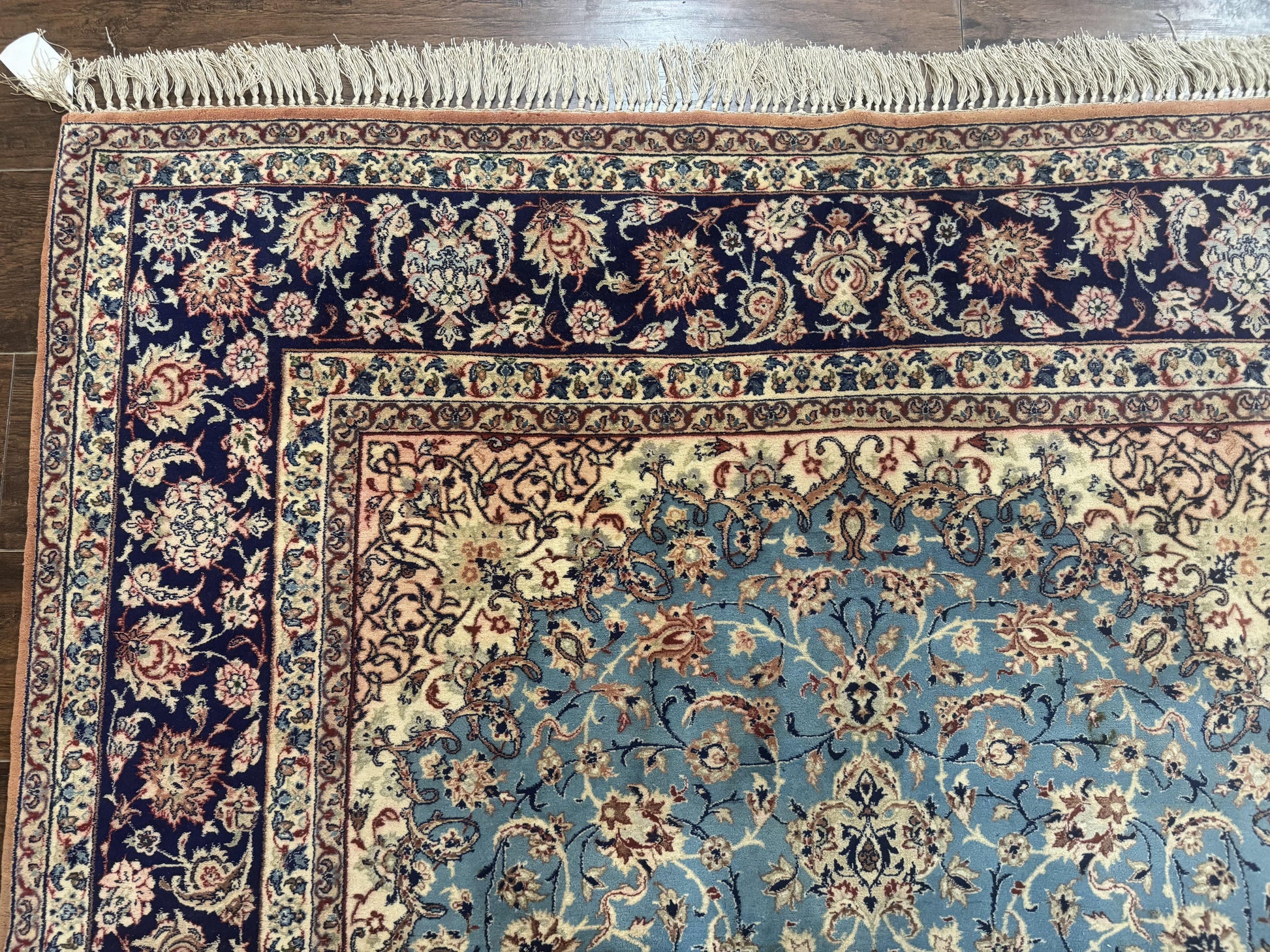 Light Blue Persian Isfahan Rug 5x8, Floral Medallion, Wool on Silk Foundation, Very Fine 530 KPSI, Handmade Carpet