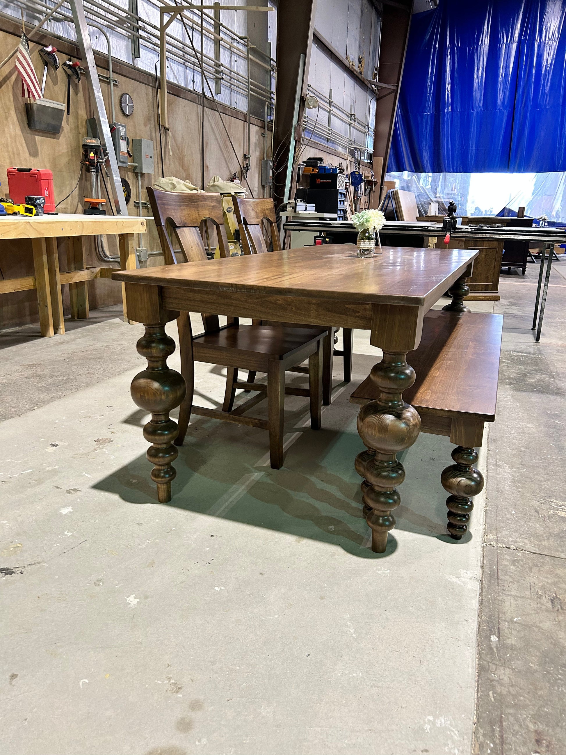 Introducing the Massive Modern Spindle Leg Dining Table — a bold, solid-wood centerpiece built for modern dining spaces. Custom-made to order, it features a striking four-leg spindle base that pairs beautifully with any dining chairs or a matching bench.