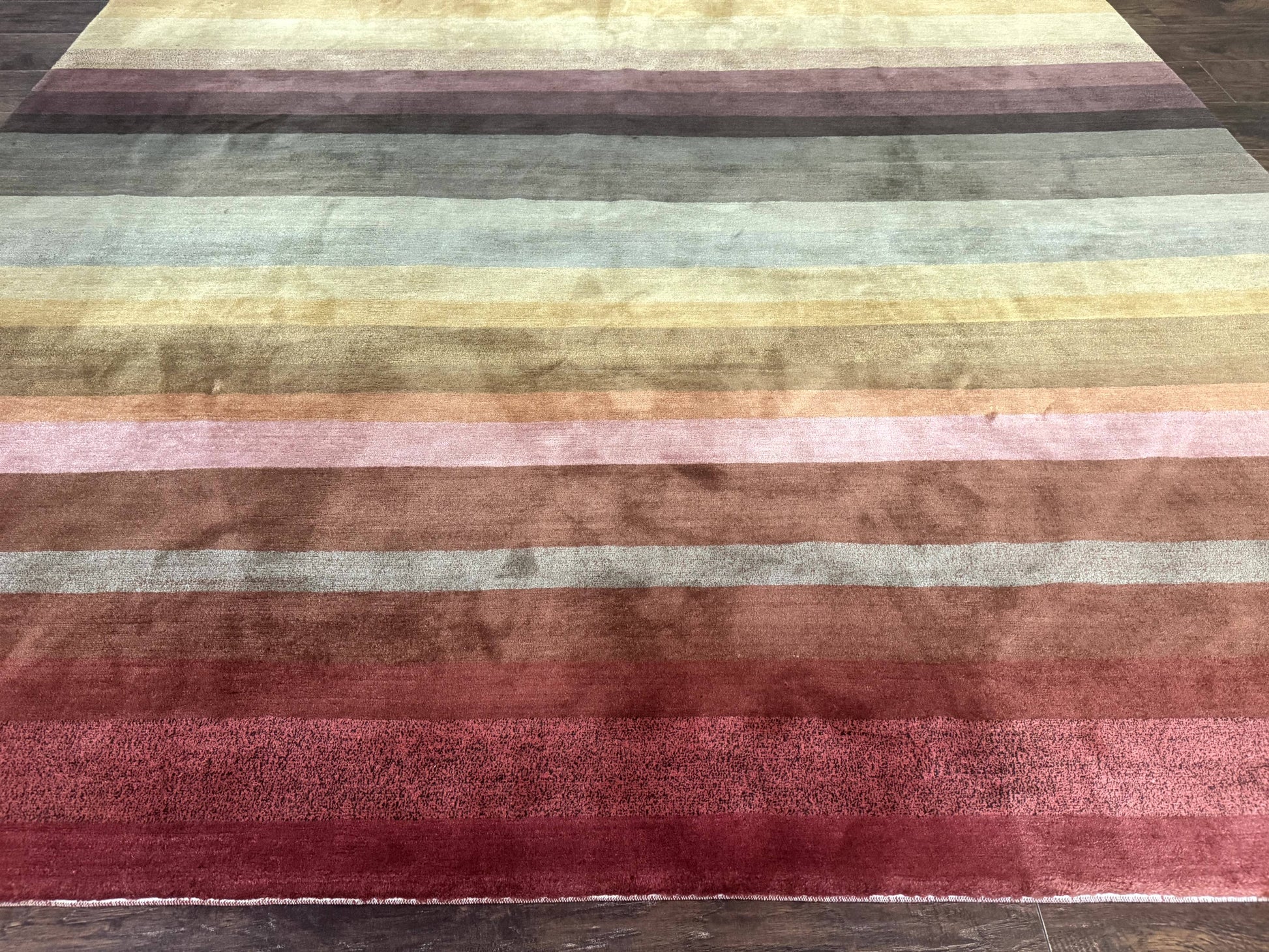 - Colors & Design: Multicolor stripes in earthy, muted tones arranged in a minimalist gradient for a modern aesthetic