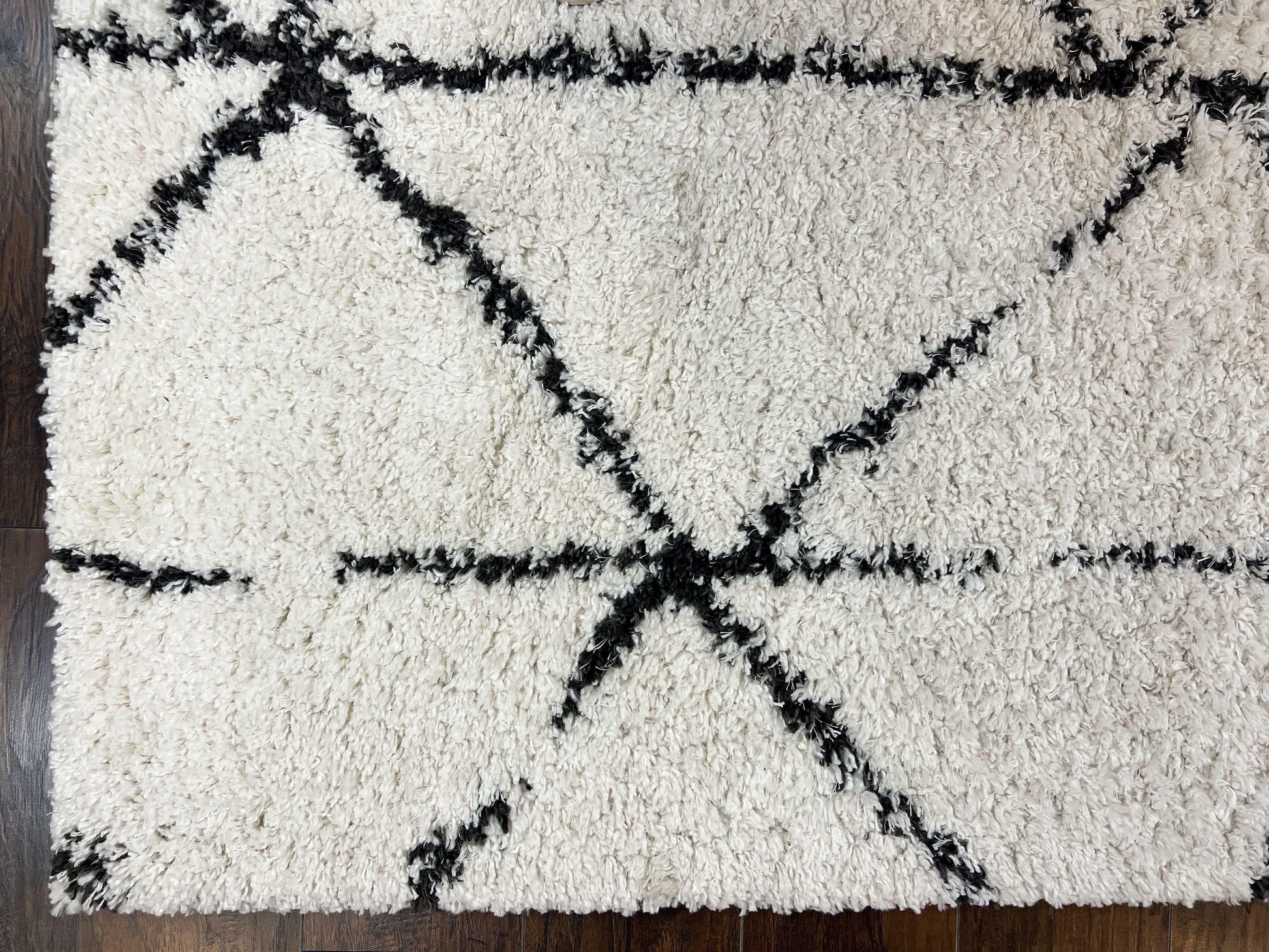 Modern Shag Rug 5x7, Ivory and Black Area Rug 5 x 7 ft