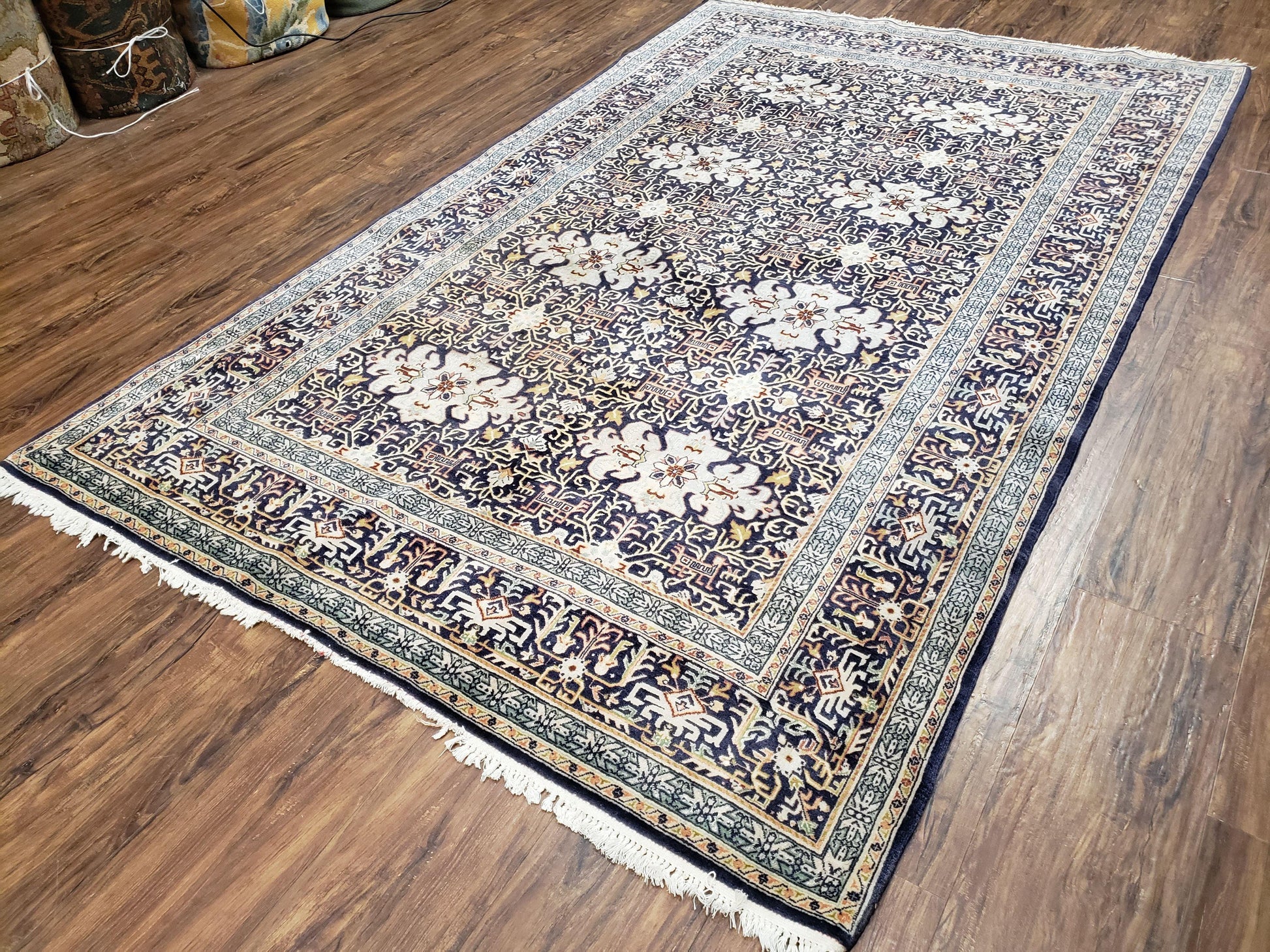 Navy Blue Persian Kashan Rug Hand Knotted Wool 4ft 8in x 7ft 4in Pair B