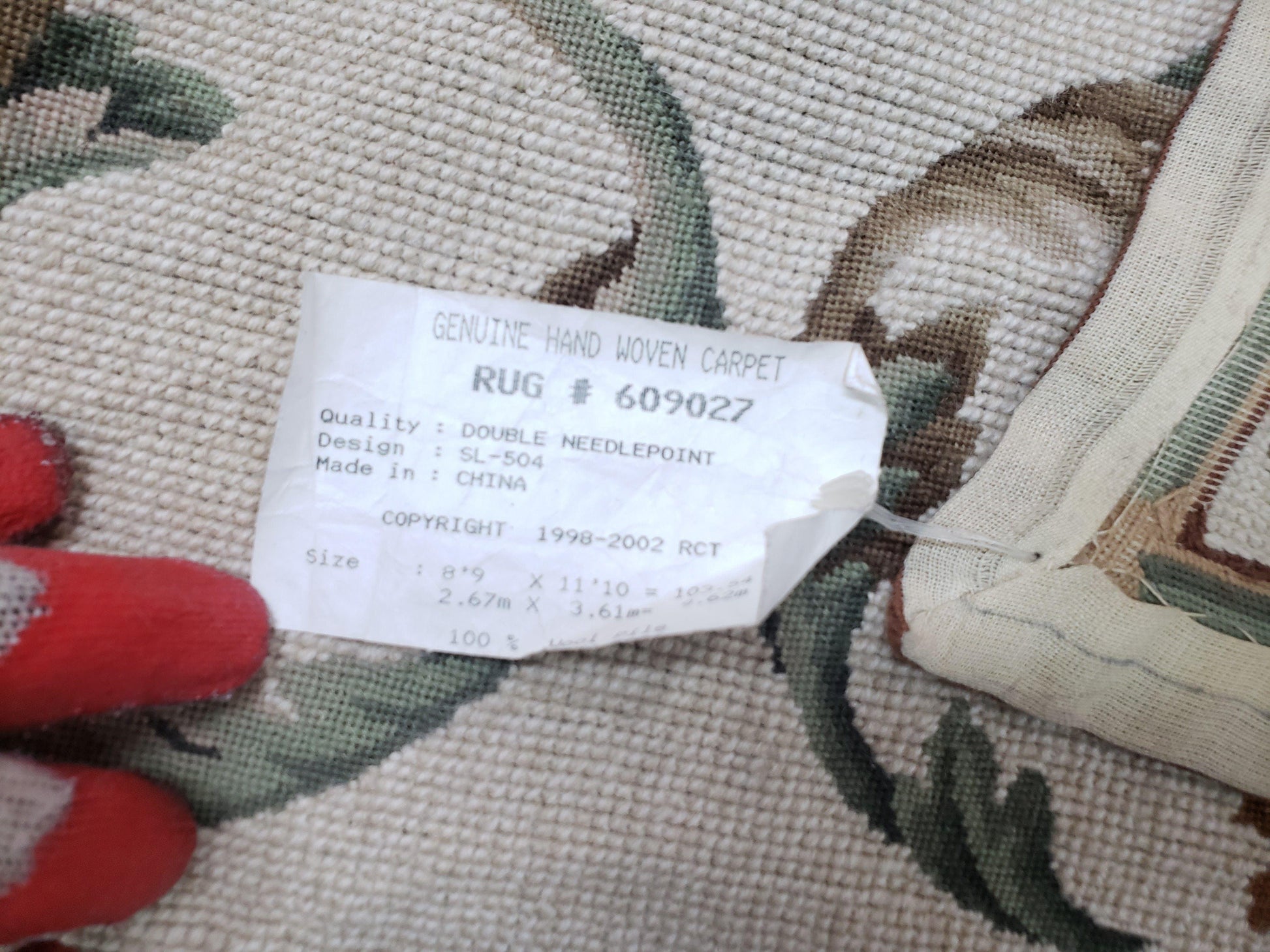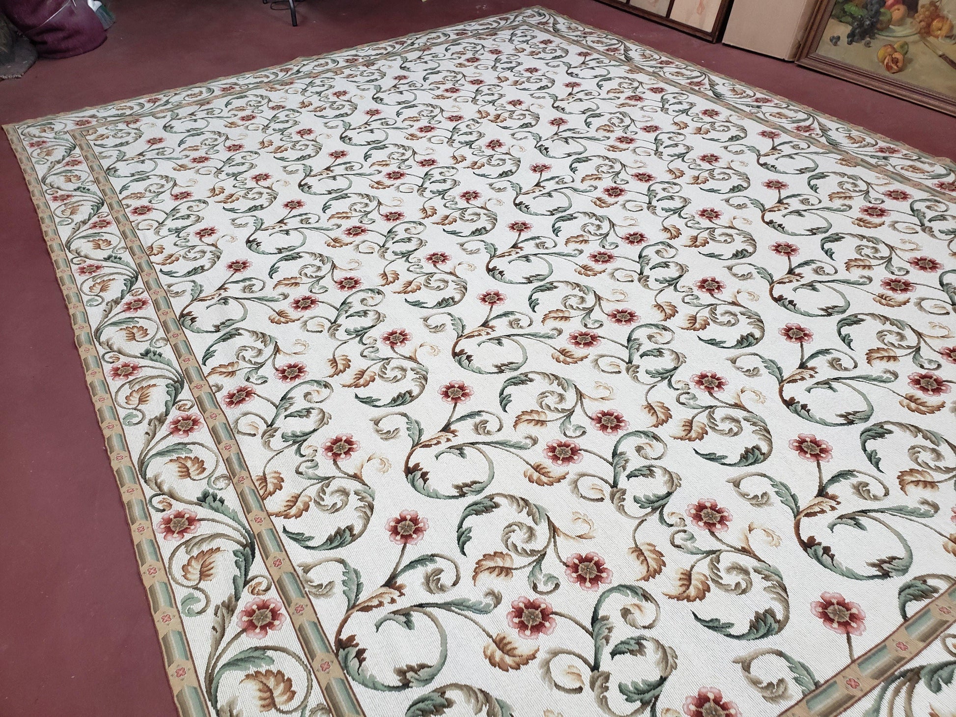 Needlepoint Rug 9x12, European Aubusson Design, Floral Allover Garden Pattern, New Needlepoint Area Rug, Ivory Rug, Hand Woven, Flatweave