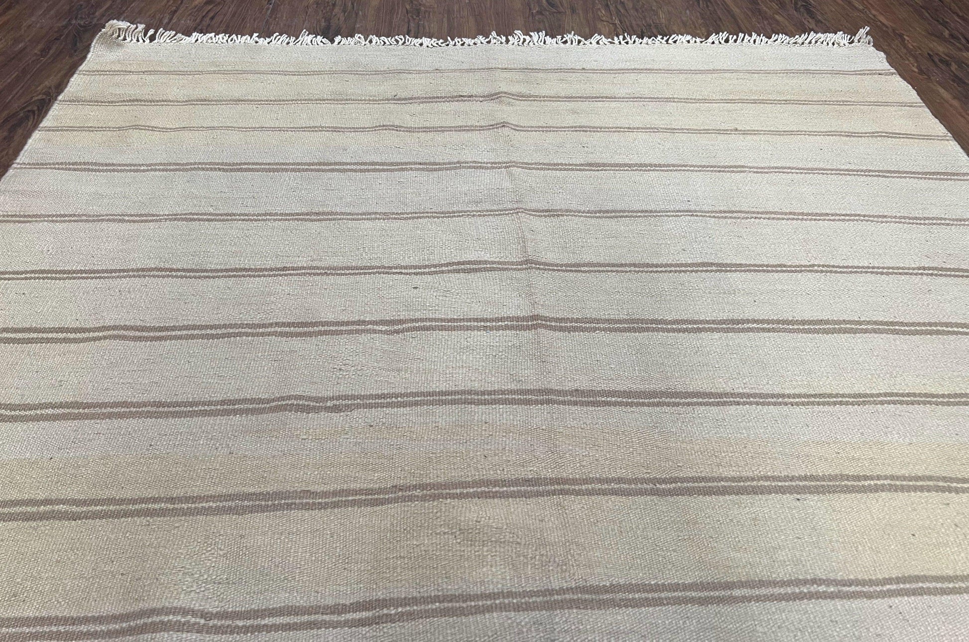 New Turkish Kilim Rug 5x8 Flatweave Wool Carpet Hand Woven Bohemian Contemporary Striped Gray Taupe