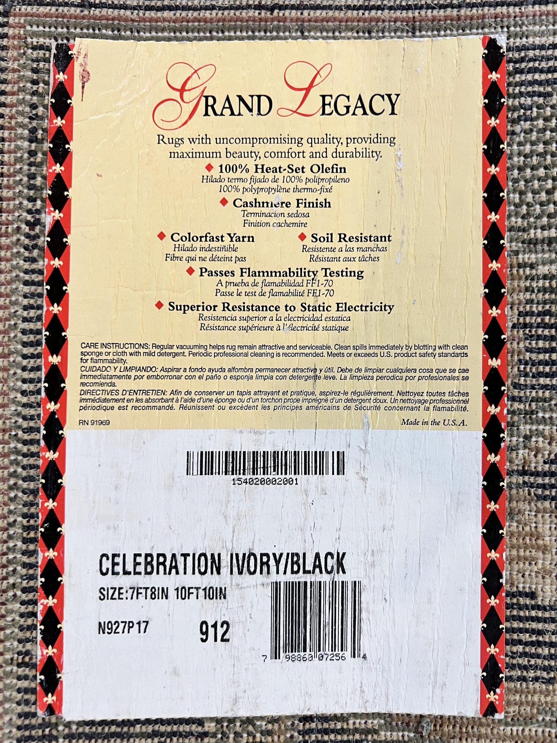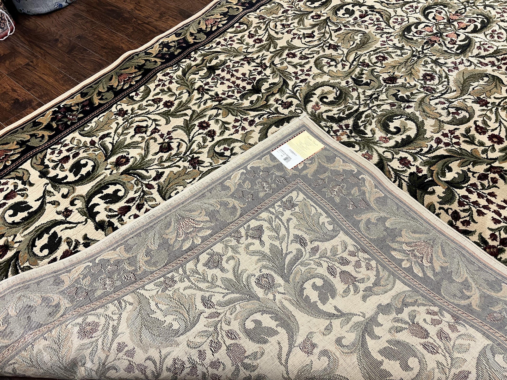 Oriental Rug 8x11, Floral Pattern, Ivory and Black