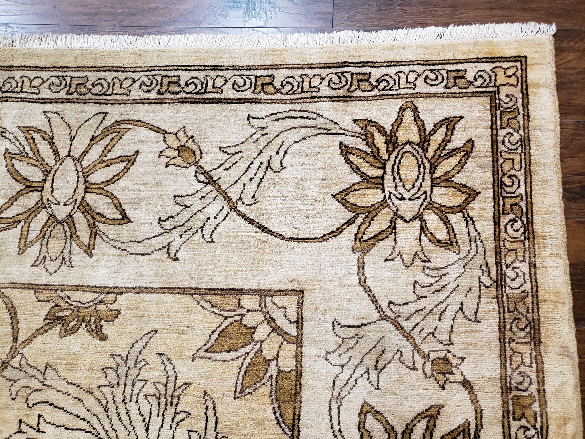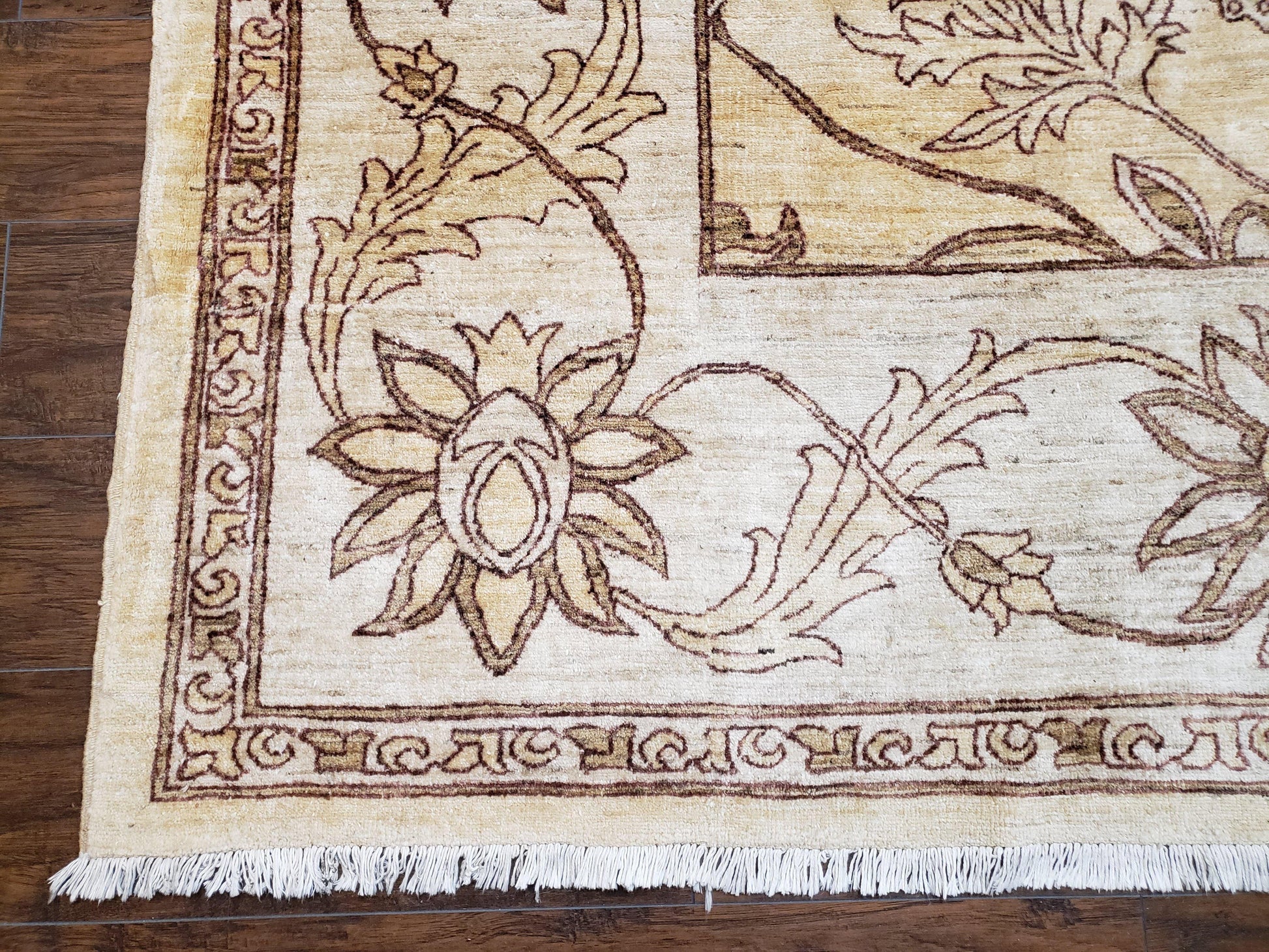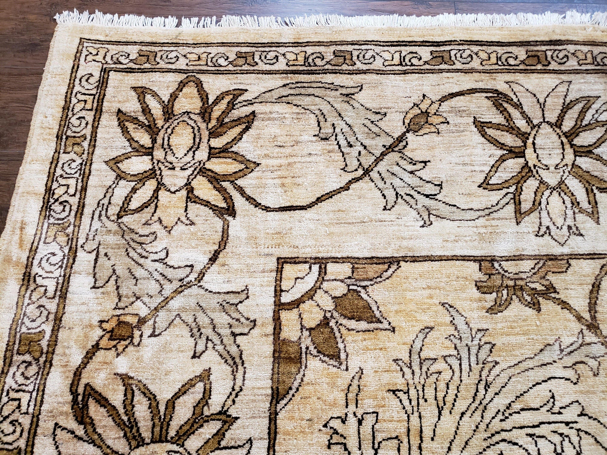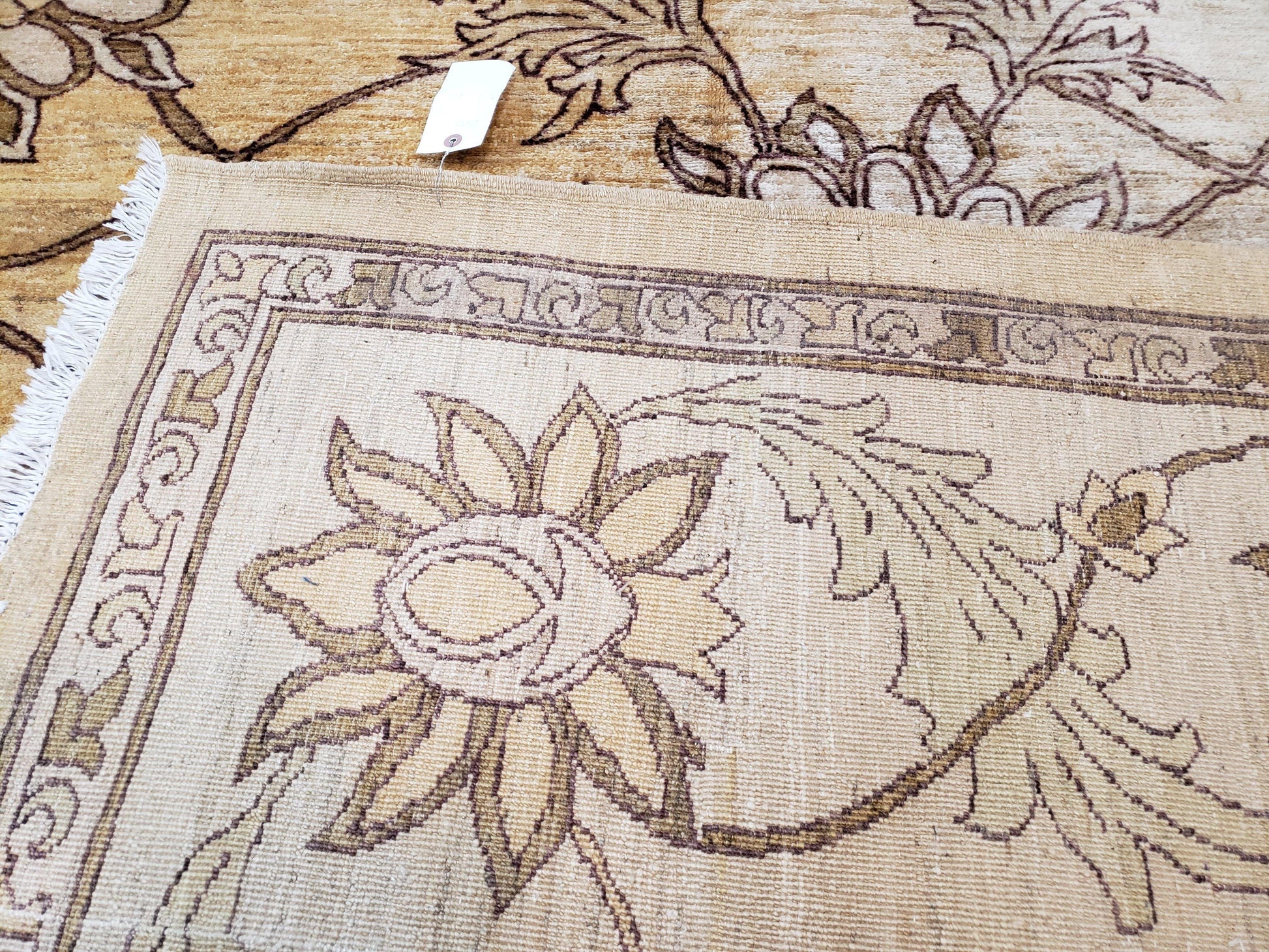 Discover an oversized, hand-knotted wool rug that brings timeless Pakistani artistry into your space. The Peshawar Chobi area rug blends light gold and ivory with a floral motif, making it a versatile centerpiece for living rooms, bedrooms, or entryways.