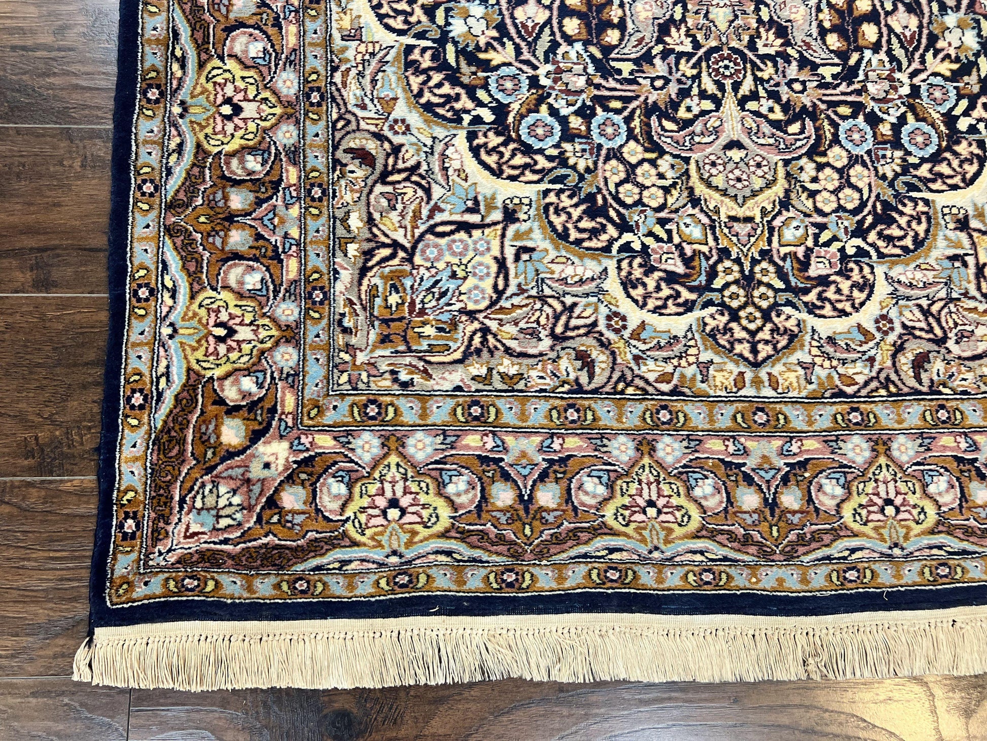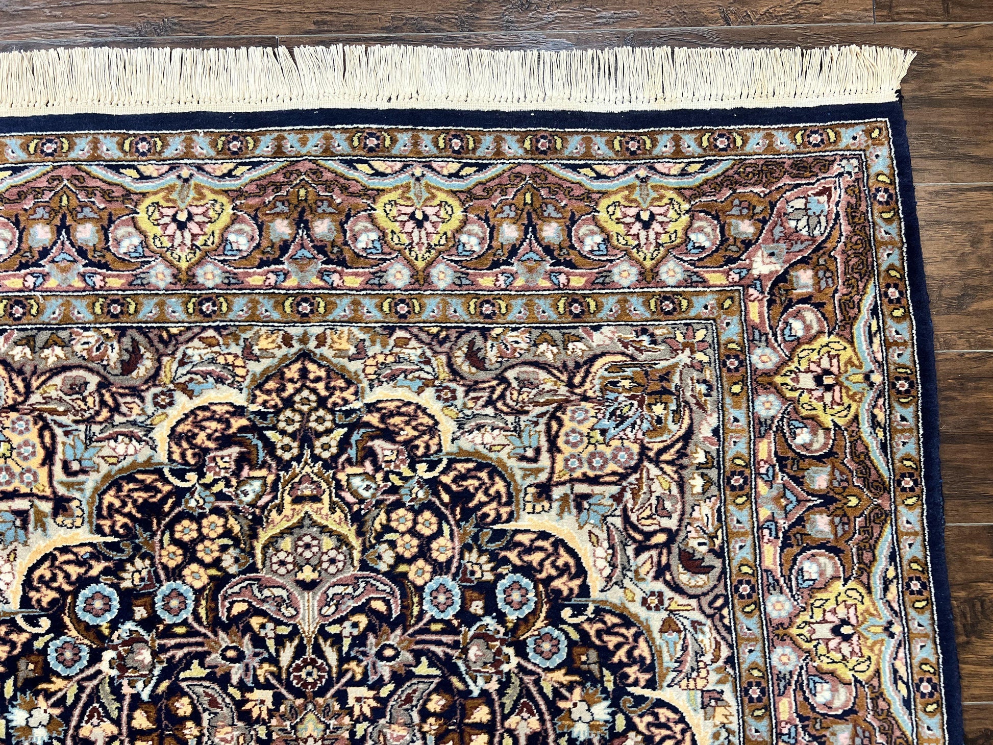 Pak Persian Rug 5x7 Navy Blue Hand Knotted Wool Floral Medallion Oriental Carpet