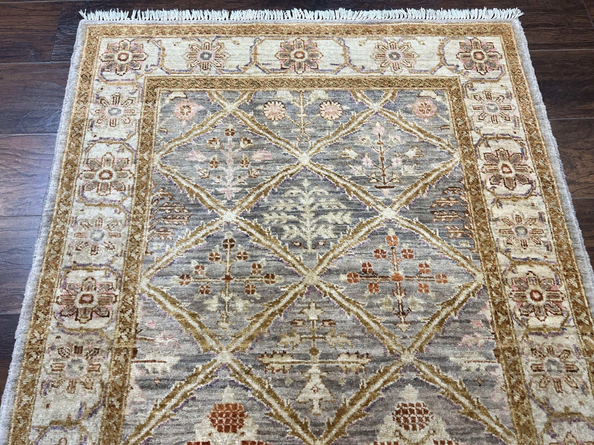 Peshawar Rug 3.6 By 5 Handmade Wool Hand Knotted Vintage Panel Design Oriental Carpet