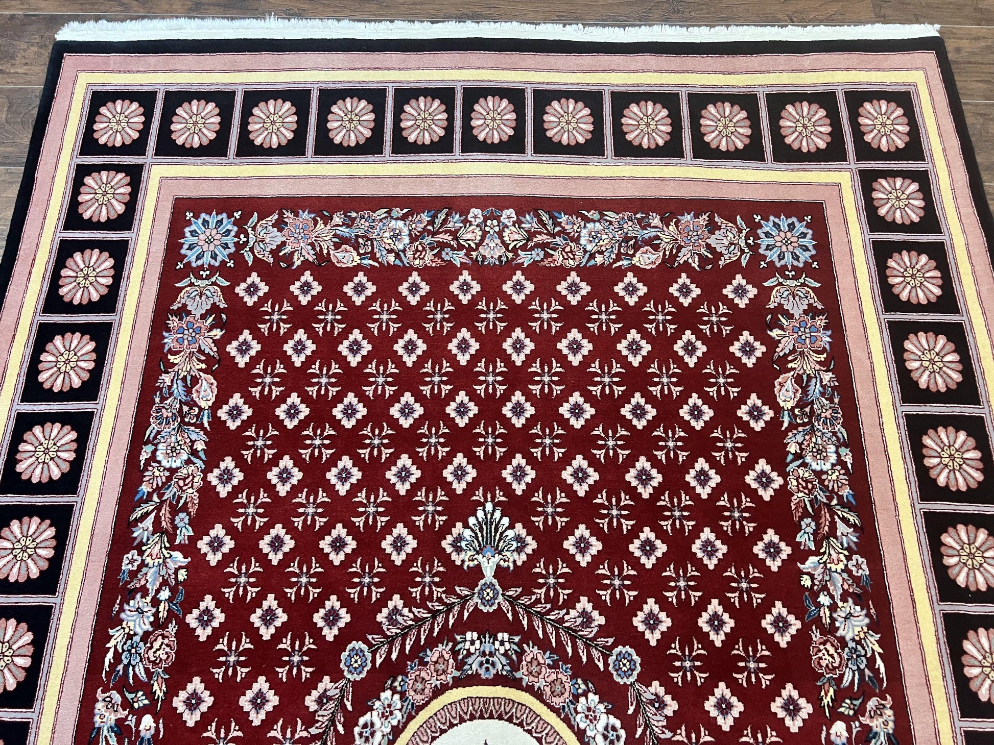 Pakistani Rug 6x9, European Aubusson Design, Wool Handmade Vintage Carpet, Dark Red, 6 x 9 Medium Sized Rug