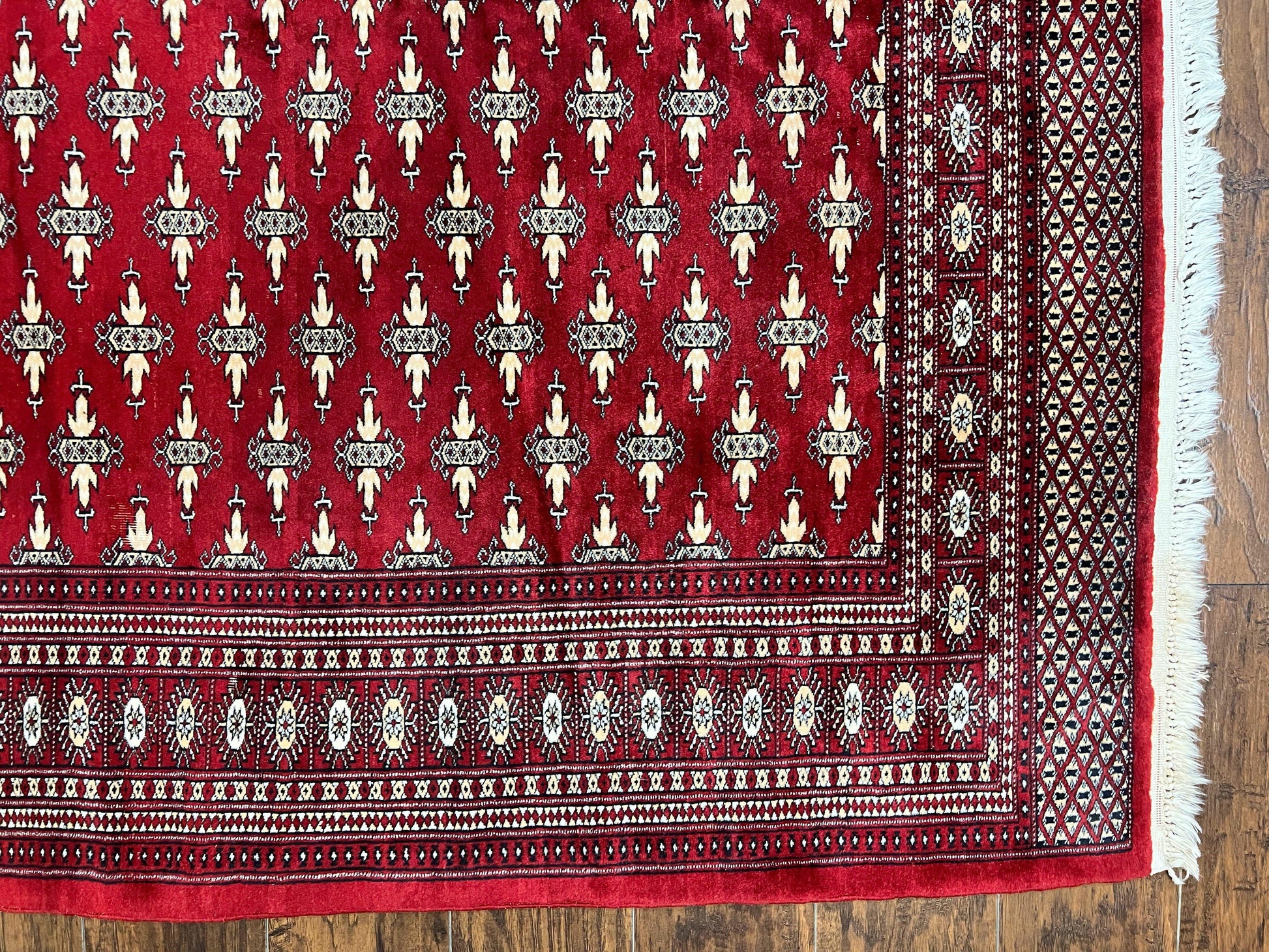 Pakistani Turkoman Bokhara Rug 6x9, Fine Wool Vintage Hand Knotted Handmade Yamud Oriental Carpet 6 x 9, Red Turkoman Rug, Tribal Rug