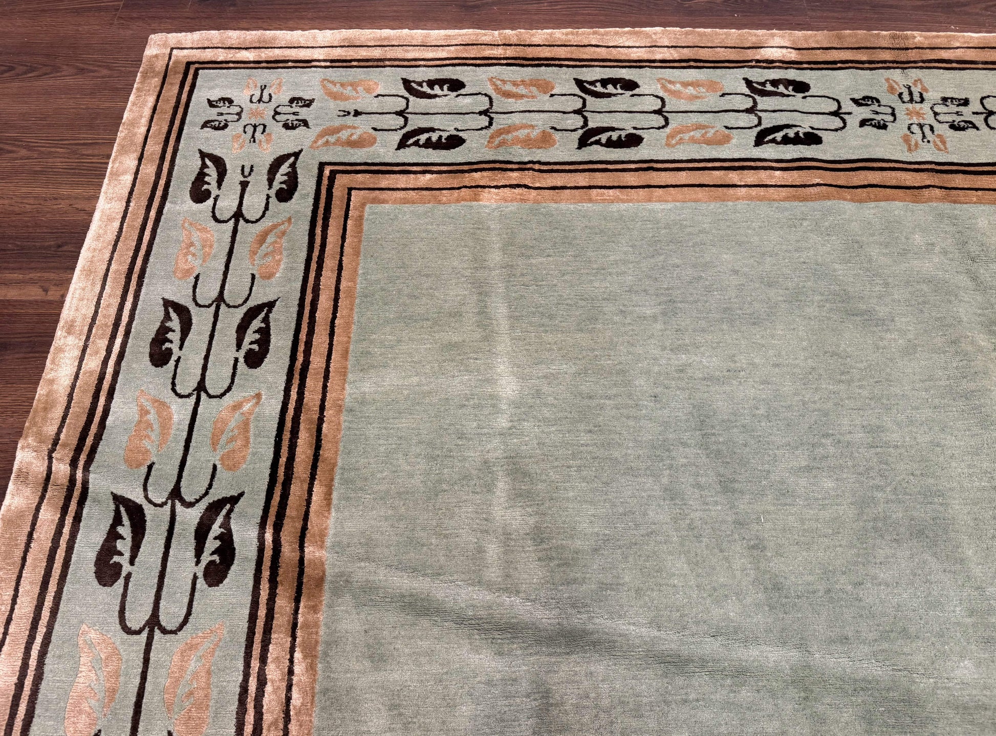 Palace Size Nepali Rug 9x18 Light Mint Green Open Field Wool Hand Knotted Modern Contemporary