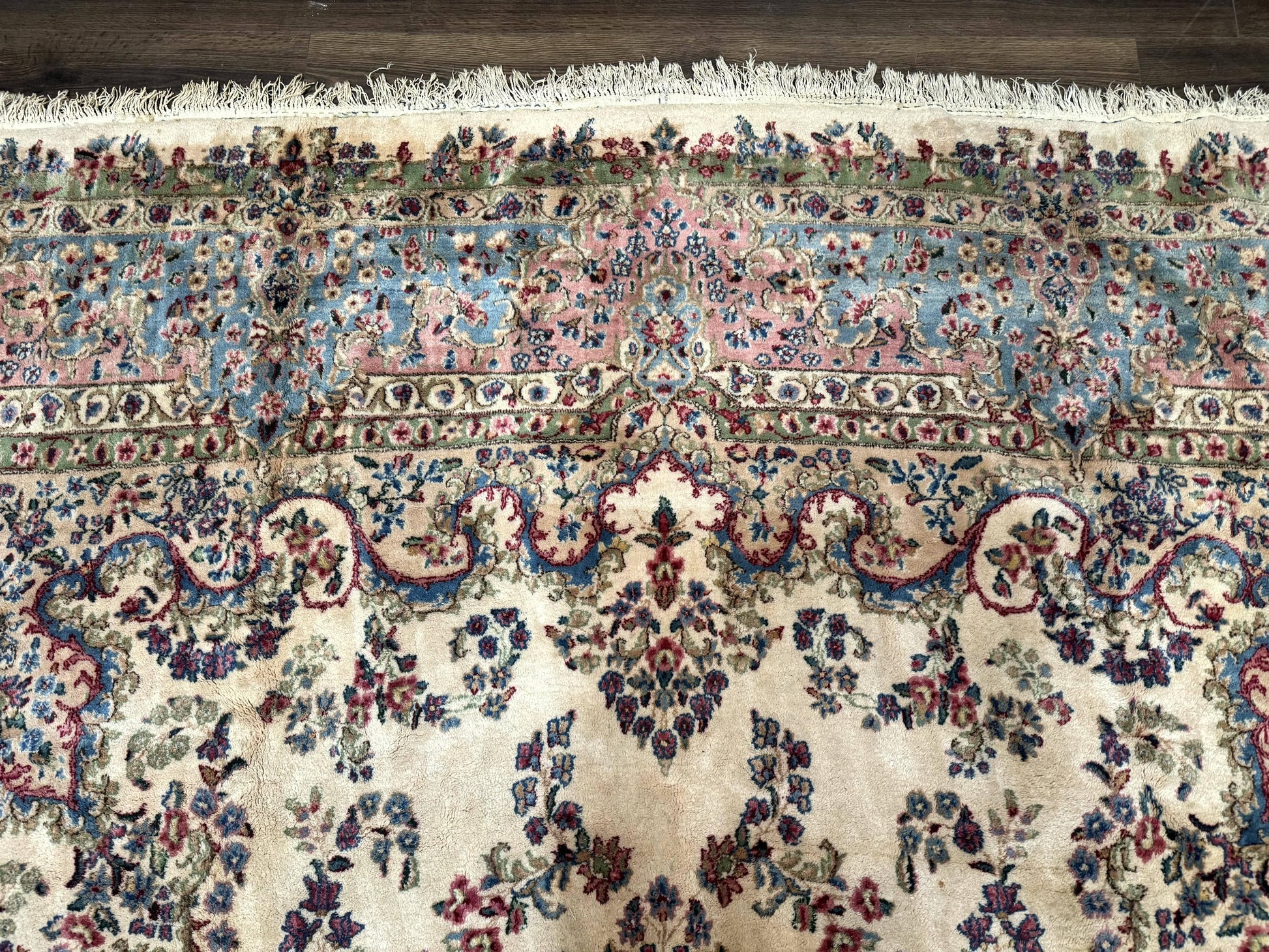 Palace Size Persian Kerman Rug 11x20 ft, Very Fine 340 KPSI, Vintage Oversized Wool Handmade Large Persian Carpet, Beige Light Blue Pink