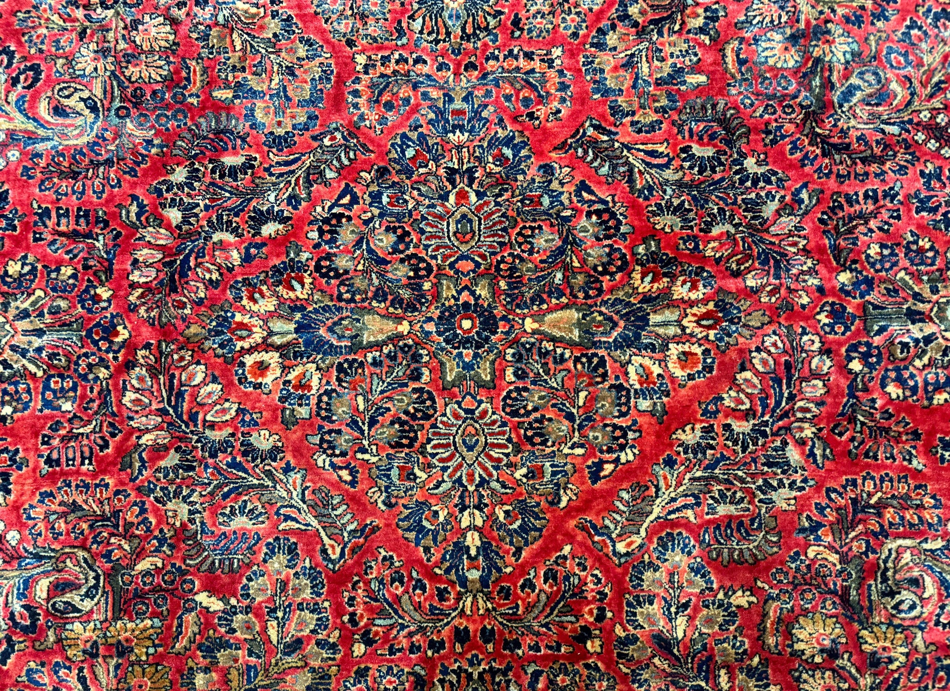 Persian Sarouk Rug 10x16 Palace Size Antique Red Carpet With Floral Medallion