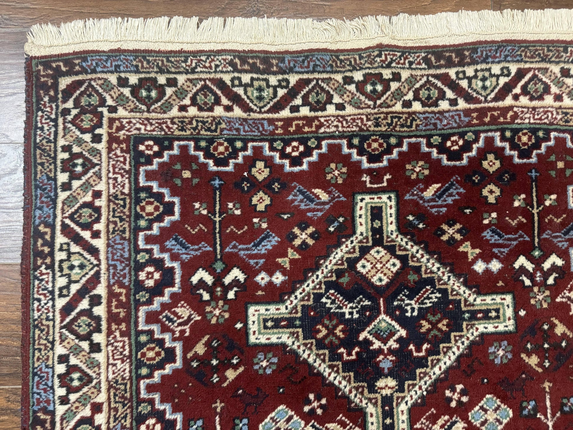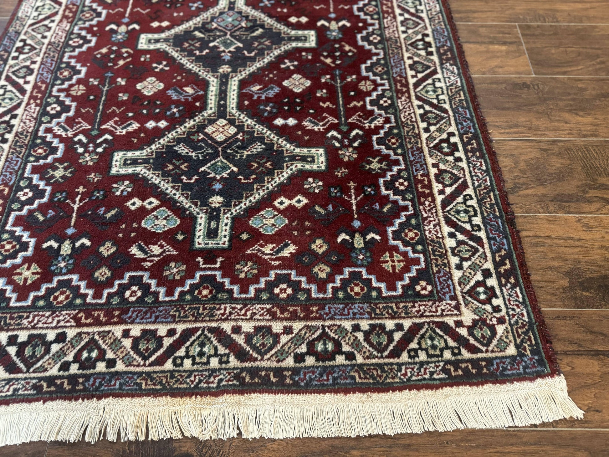 Persian Afshar Rug 4x5 Red Navy Geometric Tribal Wool Carpet