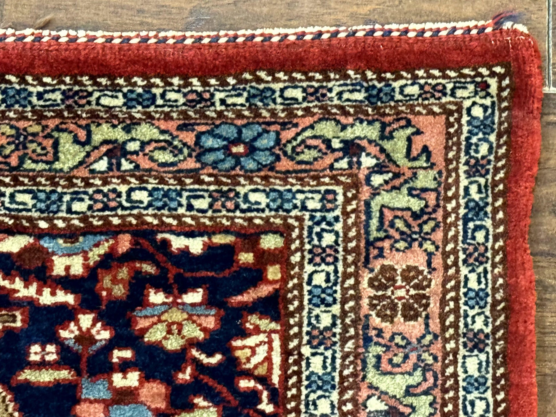 Persian Bidjar Rug 2.7 x 4, Red and Navy Blue, Small Persian Area Rug, Semi Antique